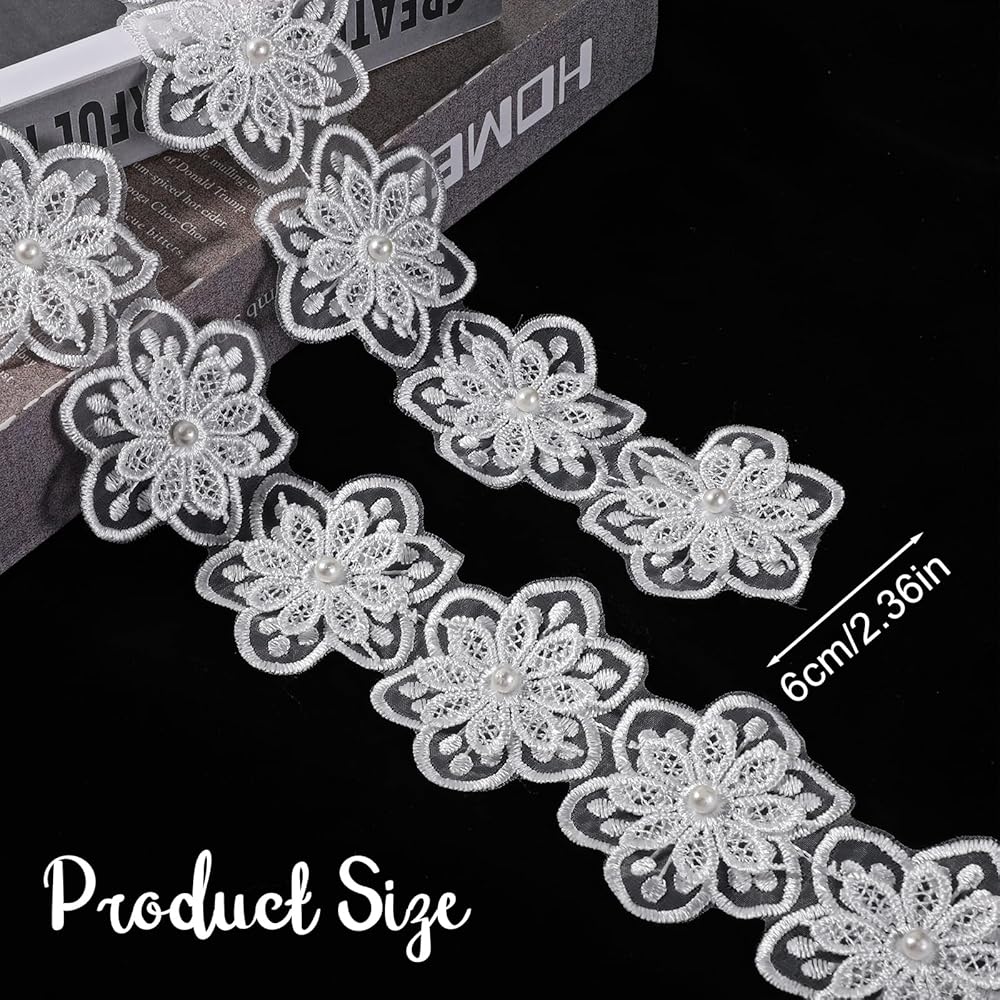 【Premium Materials】 This lace trim is made of polyester and organza and embellished with delicate imitation pearls for a luxurious effect. The durable and elegant material ensures long-lasting use, making it perfect for sewing projects, wedding dresses, and home decor.