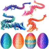 4pcs 3d المطبوعة بيض التنين مع التنين داخل ، والحيوانات الكريستالية المفصلية تململ لعبة الأطفال ، والطابعة الصغيرة ثلاثية الأبعاد ديناصور بيض لعبة كريستامز للأطفال