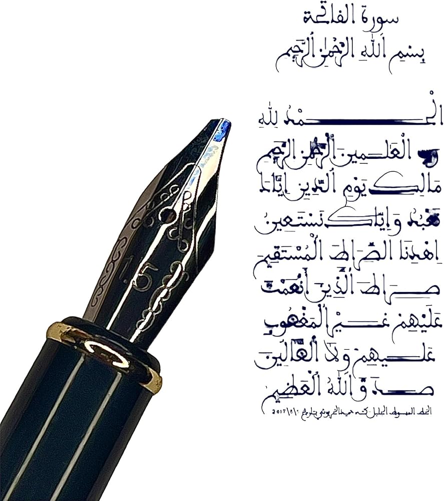 uxury Smooth and Elegant Arabic Persian Urdu Hebrew Customized Fountain Calligraphy Writing Gift pen set for both Beginners and Master Level Artist Professional ( pack of 1) (Black, 1.5mm) This Luxury Smooth and Elegant fountain pen has been customized for Arabic, Persian, Farsi, Urdu, Hebrew, Kurdish, Dewani calligraphy. It is refillable and washable. *DEFAULT NIP ANGLE IS FOR A FUSION OF ARABIC AND PERSIAN/FARSI/URDU CALLIGRAPHY, HEBREW AND OTHER FORM CALLIGRAPHY CAN CONTACT FOR CUSTOMIZED ANGLE Straight angle for English calligraphy or Dewani calligraphy is also available