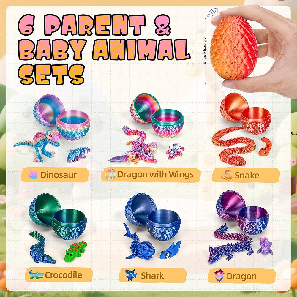 TBOLINE 12 قطعة لعبة حيوانات مطبوعة ثلاثية الأبعاد للوالدين والطفل، 6 مجموعات بيضة تنين مطبوعة ثلاثية الأبعاد مع حيوانات صغيرة بالداخل، ألعاب تنين لطيفة ثلاثية الأبعاد، هدايا تخزين عيد الميلاد للأطفال 5-7 4-6 8-12