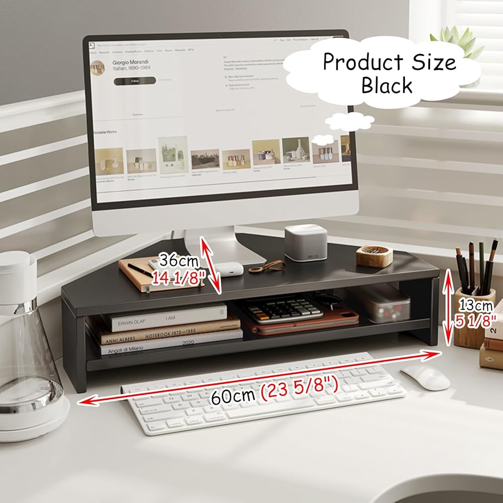 Our corner monitor stand to organise your desk in a decorative way and maximum utilizing your desktop space, let you enjoy a clean desktop! Ergonomic Office Partner - Relieve body fatigue and improve your daily working productivity.Specification:- Material: Medium Density Fiberboard ( MDF )- Assembly Required: YesFeatures:- material,not easy to deform- Save desk space, add extra space- Reduce the body pressure of office workers- Easy to put together- Suitable for computer, laptops, Screen, speakers, printers, TV, all-in-one PC, etc- This is a great gift for anniversaries of family, friends and colleaguesPackage Contents:- 1 x Corner Monitor StandNote:- There may be an error of 1-3 cm due to manual measurement.- There may be chromatic aberration due to the difference between the recording lamp and the display. Please refer to the actual product.Quality Service:- When you encounter any problems with our products, please feel free to contact us, and we will try our best to solve them for you.