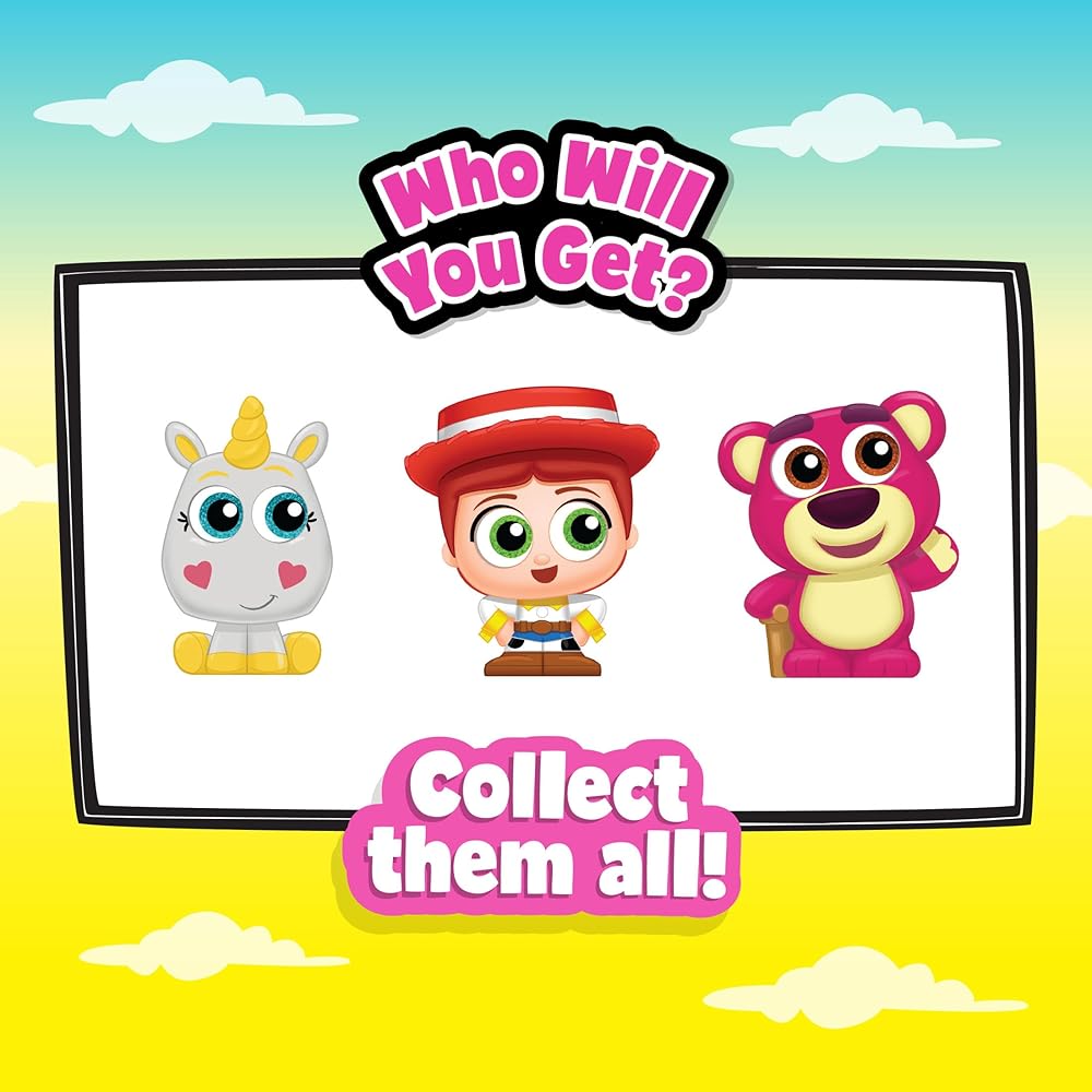 Behind every door a soft, puffy surprise is in store with the Disney Doorables Puffables Plush Toy Story 3. Discover the fun of unboxing a mystery 10-inch plushie squished inside a tiny 5-inch house. Kids will love guessing which 1 of 3 possible characters is hiding inside. Discover Lotso, Buttercup, or Jessie – all inspired by the Disney Pixar's Toy Story 3. Whichever plushie is inside, it will feature signature stylized detailing and large, glittery eyes. It will surely be a favorite among in any stuffed animal collection. Pick one – or collect them all for squishable cuddles, snuggly car rides, tea parties, movie nights, and naptime hugs (each sold separately). Cute Doorables Puffables plushies make delightful birthday – or anytime – surprises for fans of Disney toys and kids ages 5 years and up.