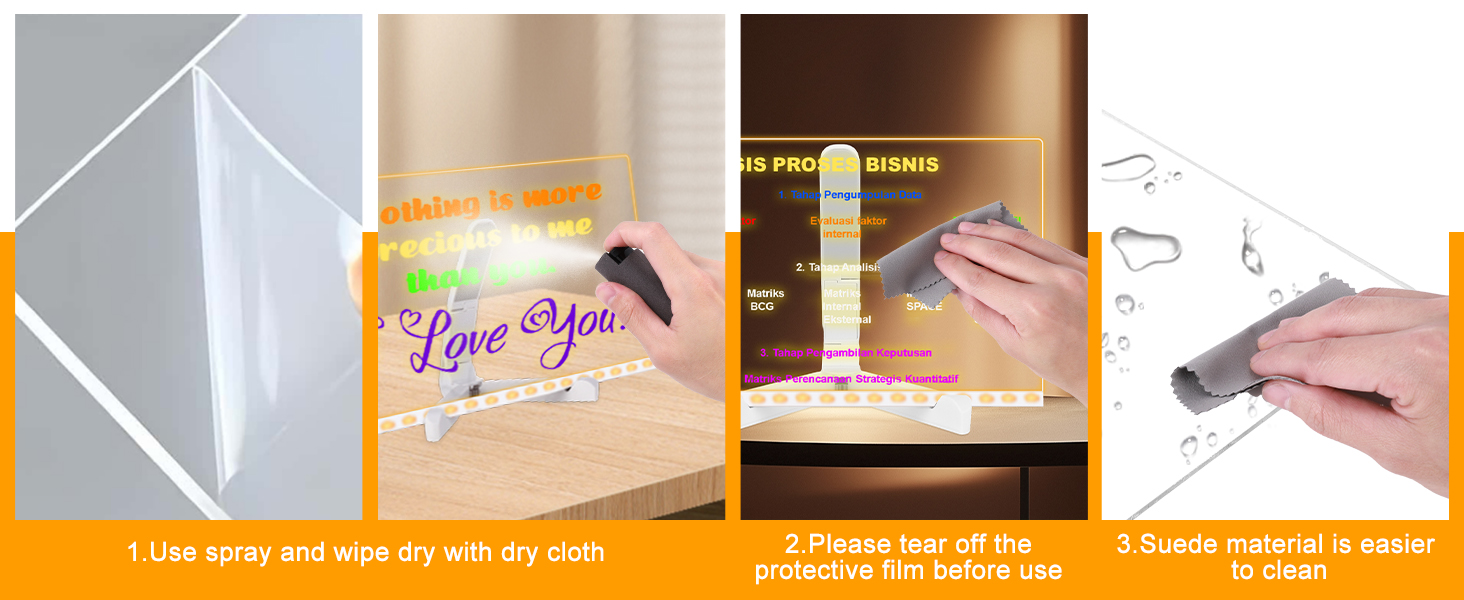من السهل التنظيف والقابل لإعادة الاستخدام: لوحة NOTE LED مع دقة عالية الدقة ، وسطح ناعم وشفاف ، سهل التنظيف وقابل لإعادة الاستخدام. لوح المسح الجاف يمسح بقطعة قماش مبللة ، ثم تجف بقطعة قماش جافة ، وسيكون لديك لوحة أكريليك جديدة تمامًا