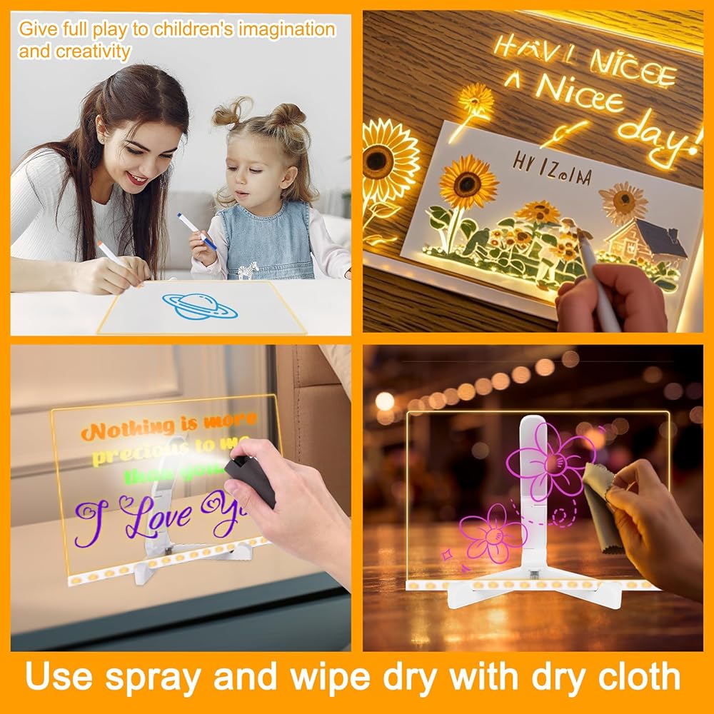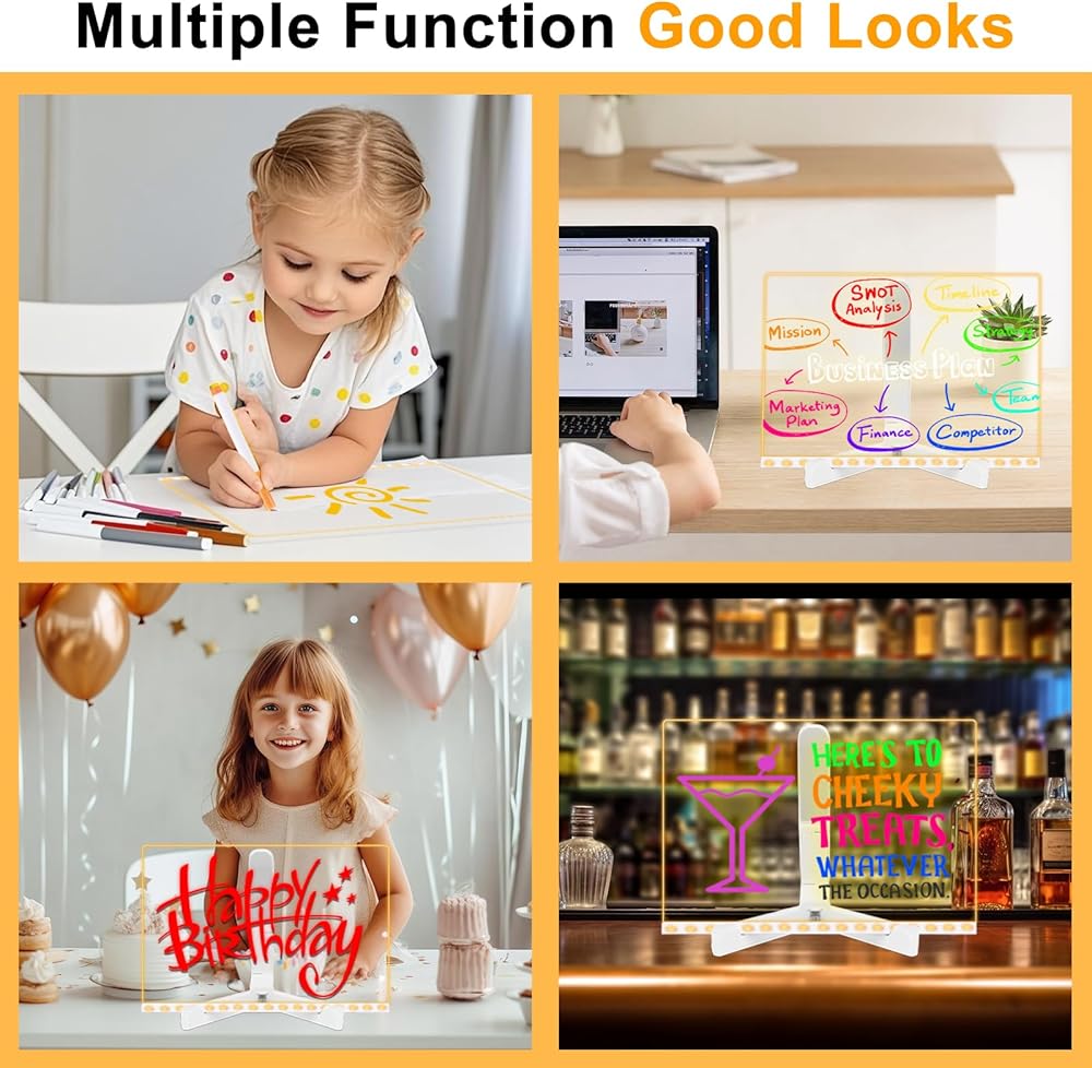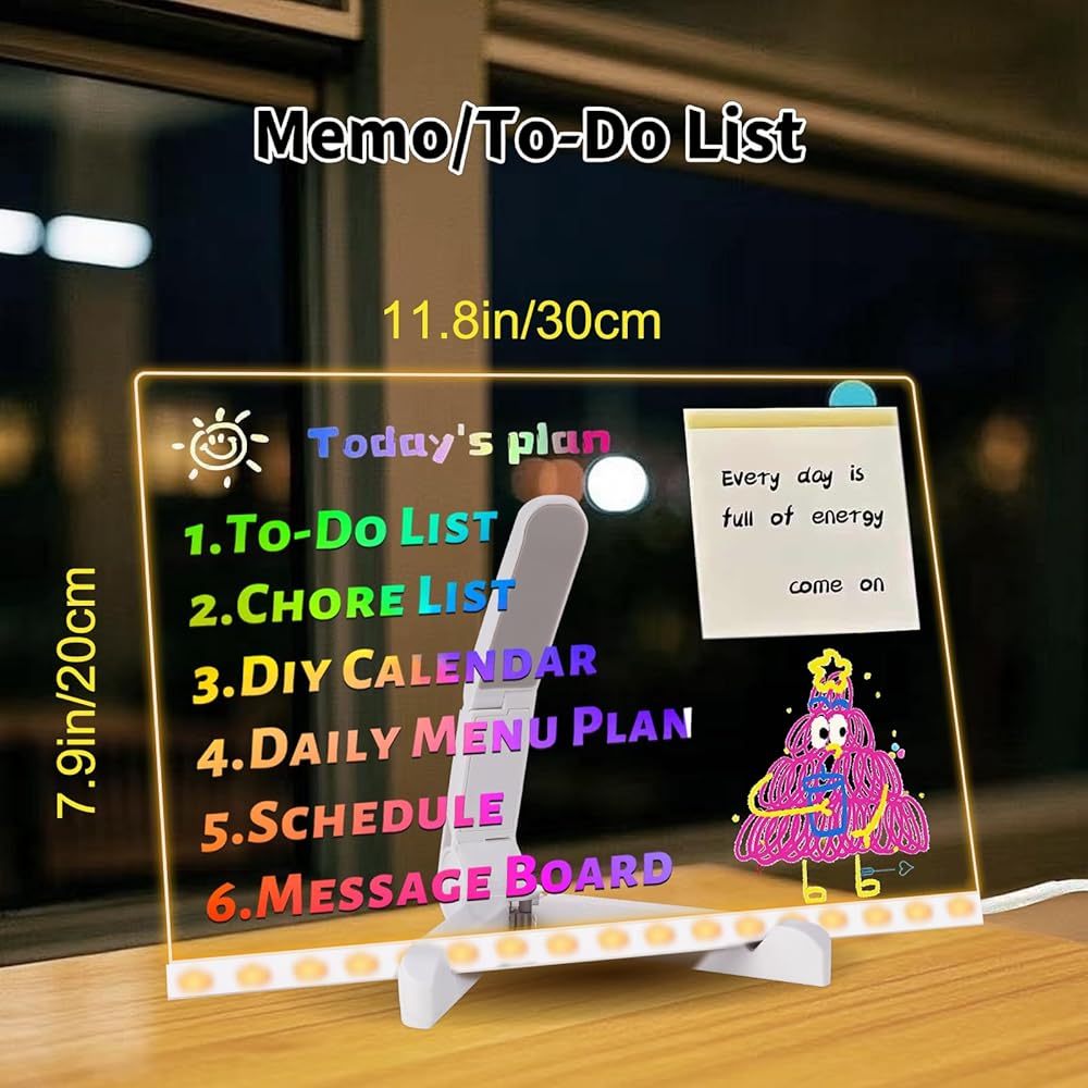 لوحة ملاحظة LED مع ألوان ، 11.8 × 7.9 "لوحة محو أكريليك الجاف مع الضوء ، لوحة المذكرة الإضاءة الأكريليك مع حامل قابل للتعديل ، لوحة مذكرات الإضاءة LED مع 12 قلم لمدرسة Office School