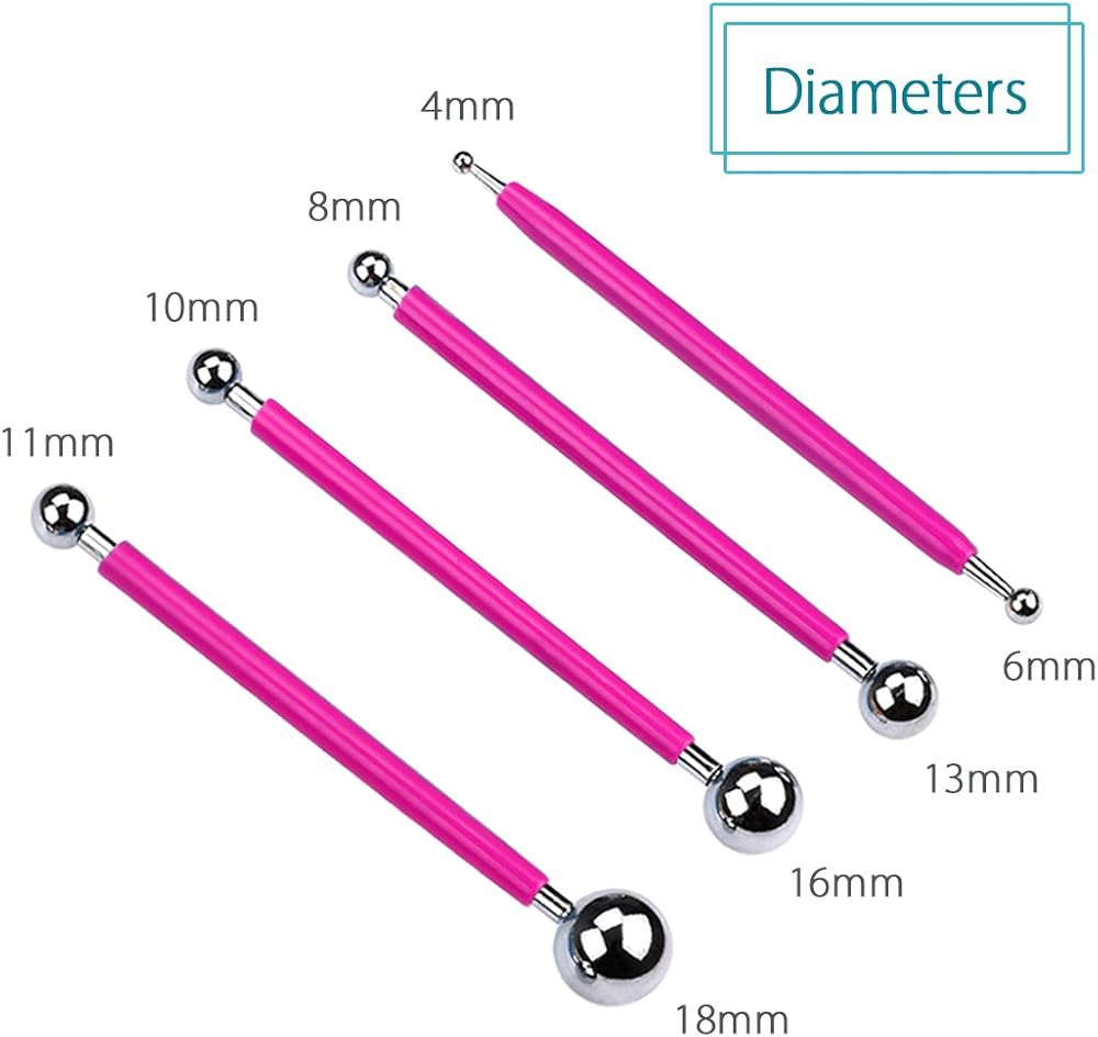 What You Get: Pink Rubber handle ball stylus x 4, Wooden handle dotting tool x 6