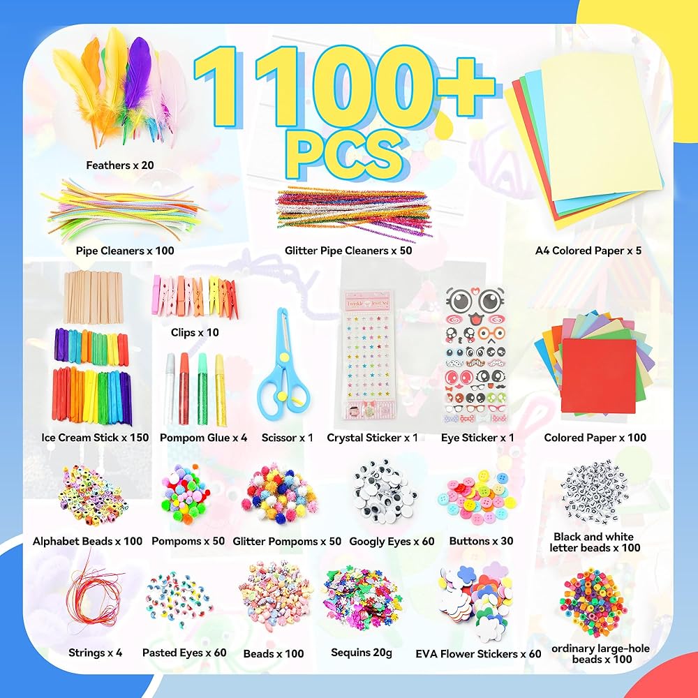 كل ما بينهما لوازم Arts & Crafts-مجموعات Smilesskiddo Craft لديها أكثر من 1100 قطعة من اللوازم الفنية للأطفال ، بدلات لأنشطة الفنون والحرف في مرحلة ما قبل المدرسة. الحرف اليدوية للأطفال الصغار 2-4 سنوات ، والفنون والحرف اليدوية للأطفال 4-6 ، مستلزمات الحرفية للأطفال