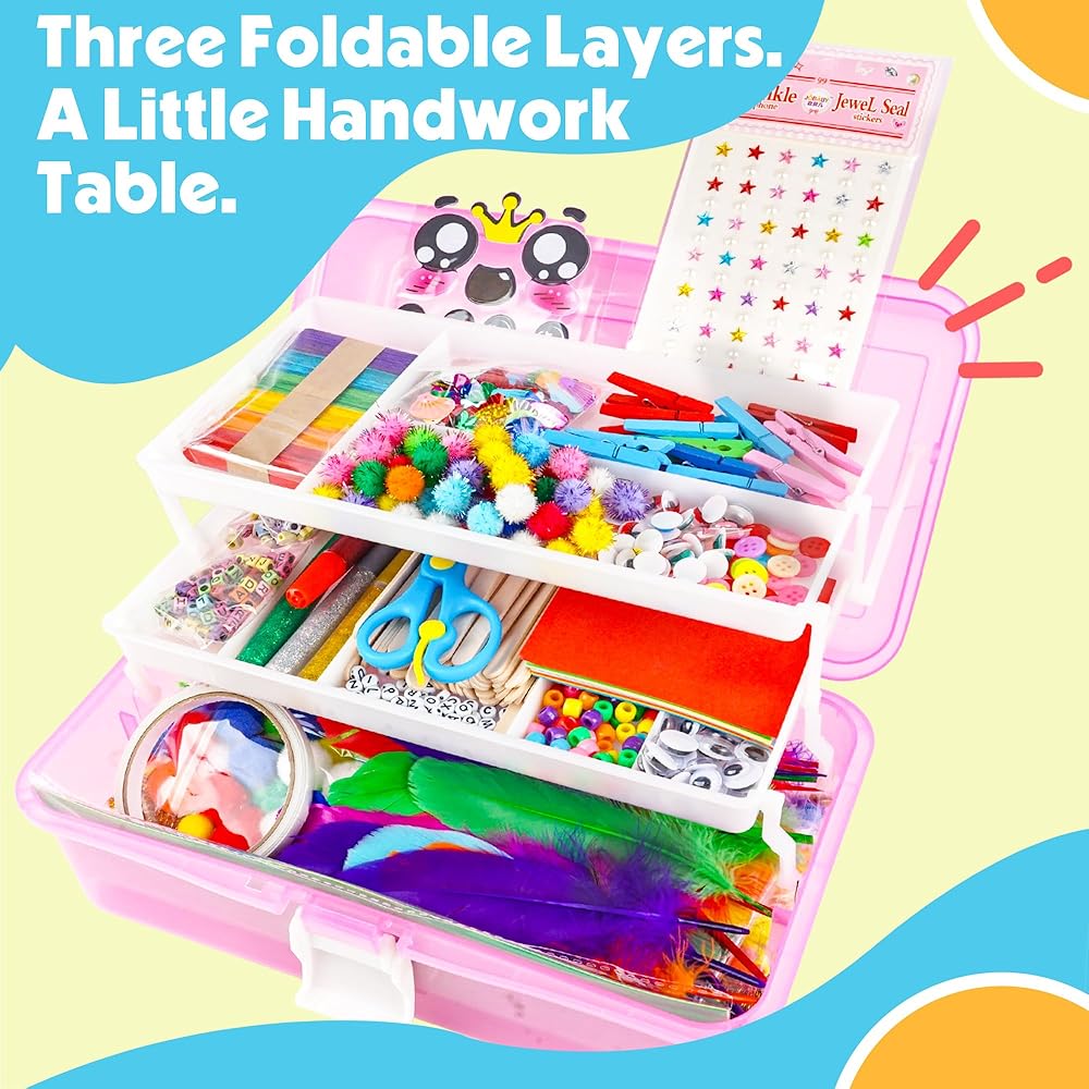 الحرف اليدوية المثيرة للاهتمام للأطفال - يحتوي صندوق الحرف على مختلف اللوازم والمواد لديكور غرفة الأطفال ، أو واجبات رياض الأطفال ، أو الحفلات ، أو الأنشطة الفنية والحرف اليدوية. الفنون والحرف اليدوية للأطفال الذين تتراوح أعمارهم بين 6-8 فتيات ، والفنون والحرف اليدوية للأطفال الذين تتراوح أعمارهم بين 2 و 4 سنوات.