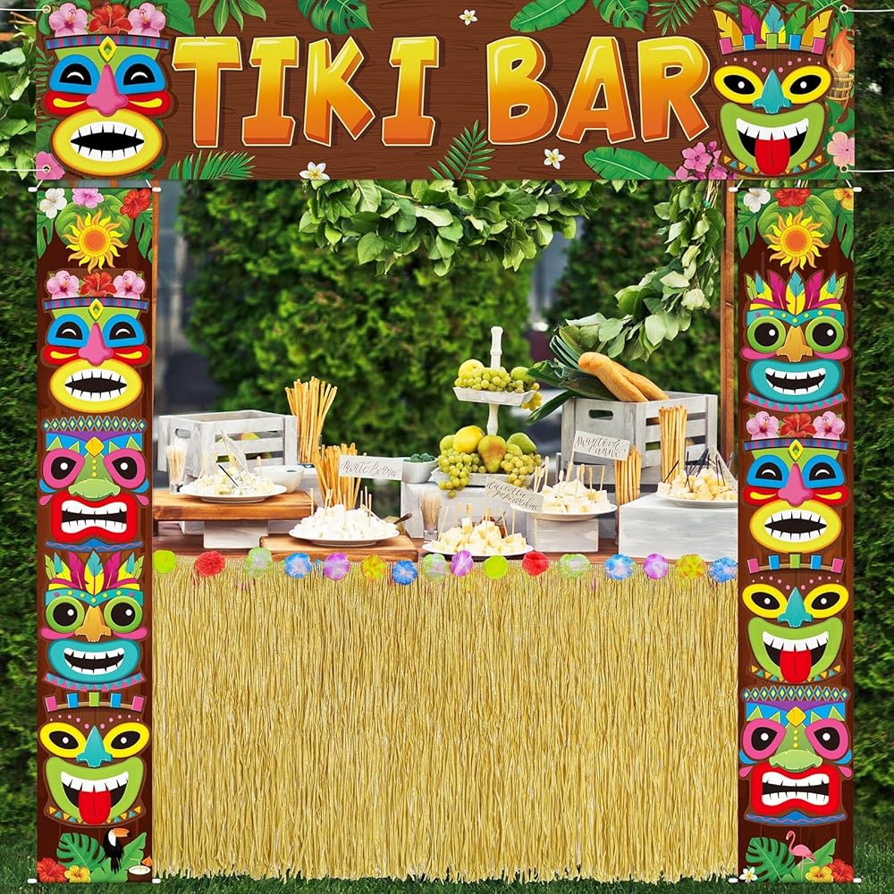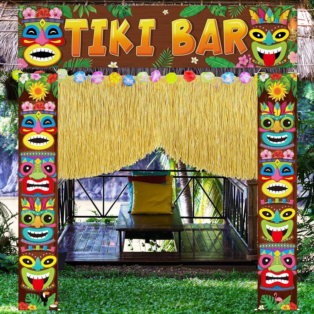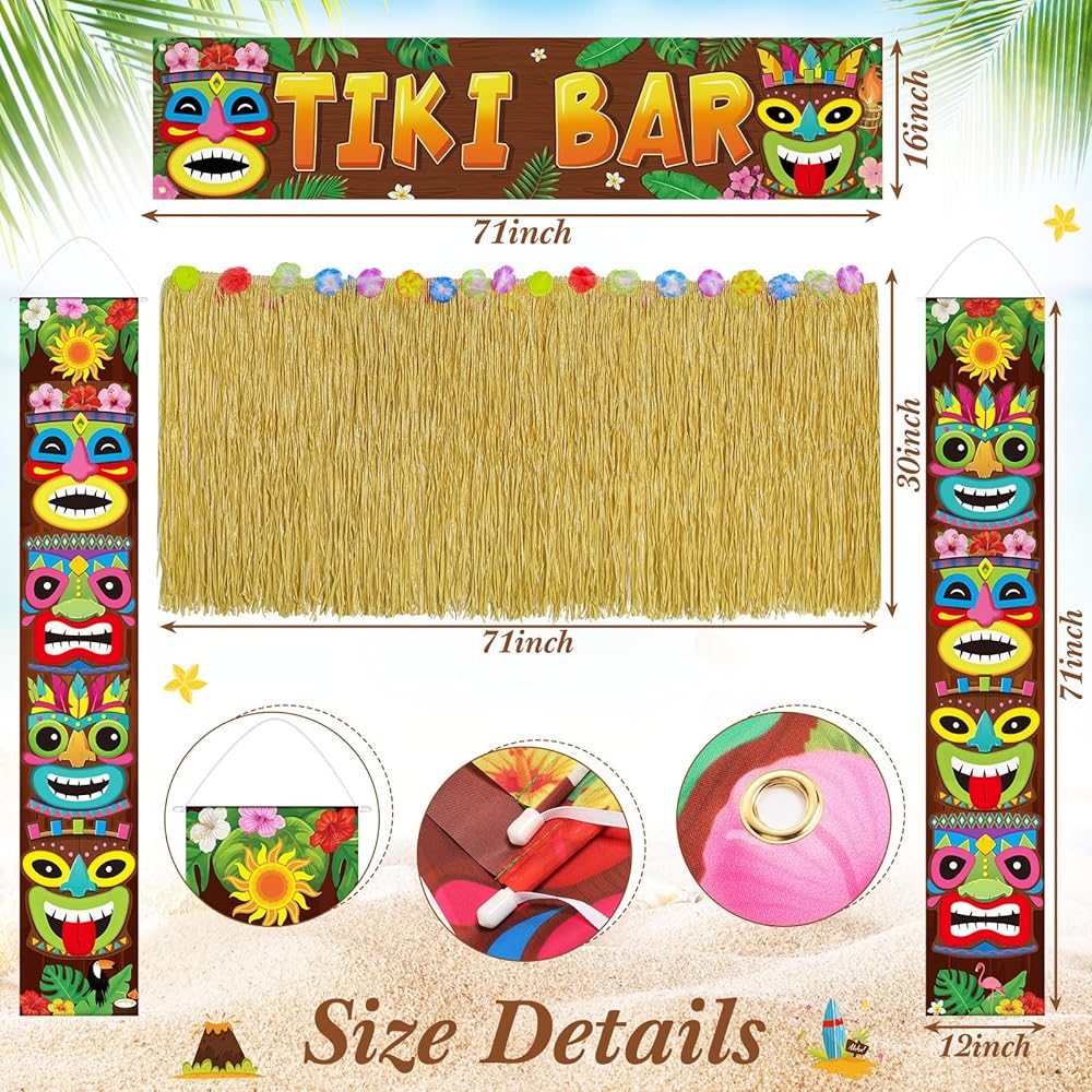 4 أجهزة كمبيوتر أجهزة كمبيوتر Hawaiian Tiki Party Decorations مجموعة Tiki Totem Door Lanner علامات Aloha Grass Door Skirt Decor Decor Decord Luau Decor