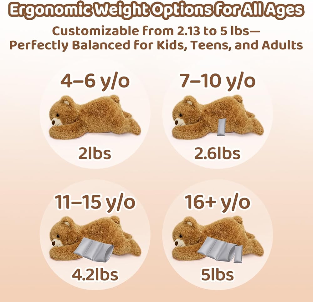 2025 تصميم ترقية - يأتي حيوان الدب المحشو القابل للتعديل من 5 رطل أو 2.13 رطل مع وسادة تسخين قابلة للإزالة يمكن أن تكون ميكروويف للدفء اللطيف أو البرد لتخفيف التبريد. سواء كنت تنتهي بعد يوم طويل أو تسعى إلى الراحة في الليالي الباردة أو أيام الصيف الحارة ، فإن هذا الحيوان المحشو المدفأة يقدم الدعم المريح. تم تصميمه لكل من الأطفال والبالغين ، ويوفر ضغطًا مهدئًا وعناقًا مريحًا على مدار السنة.