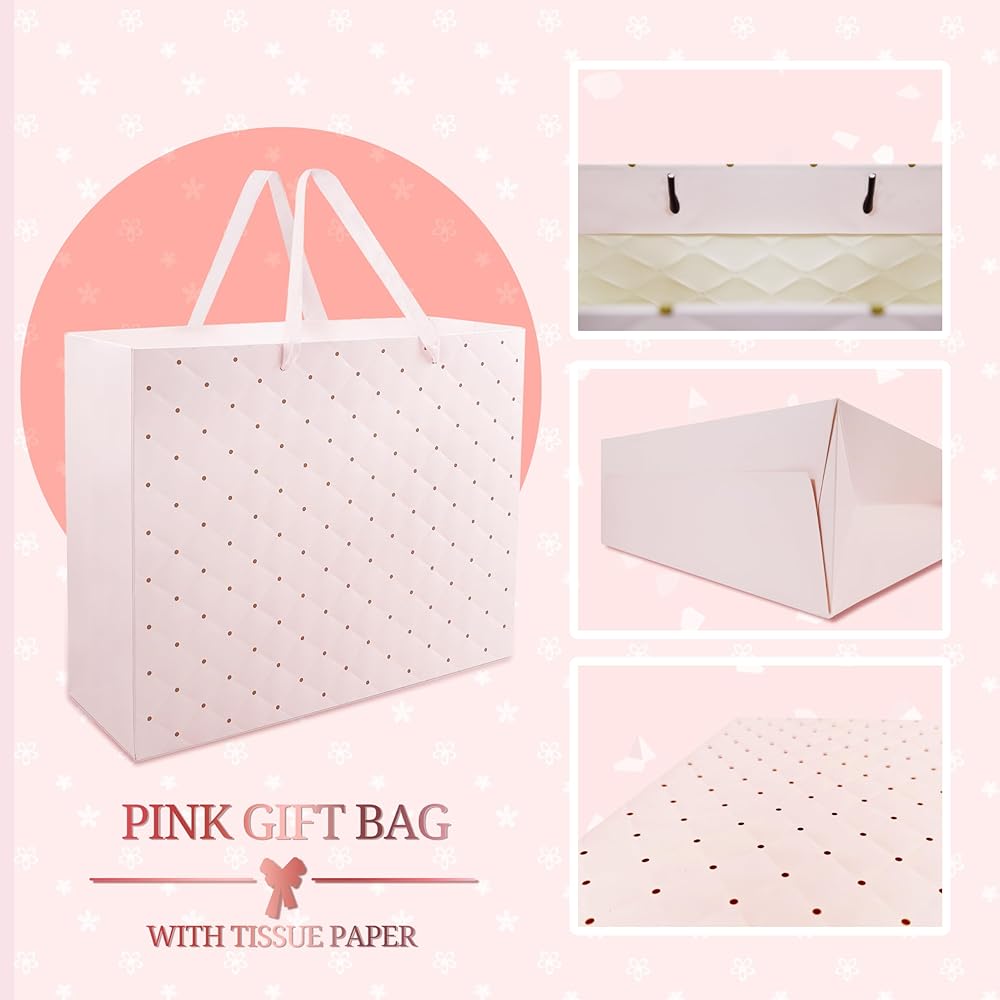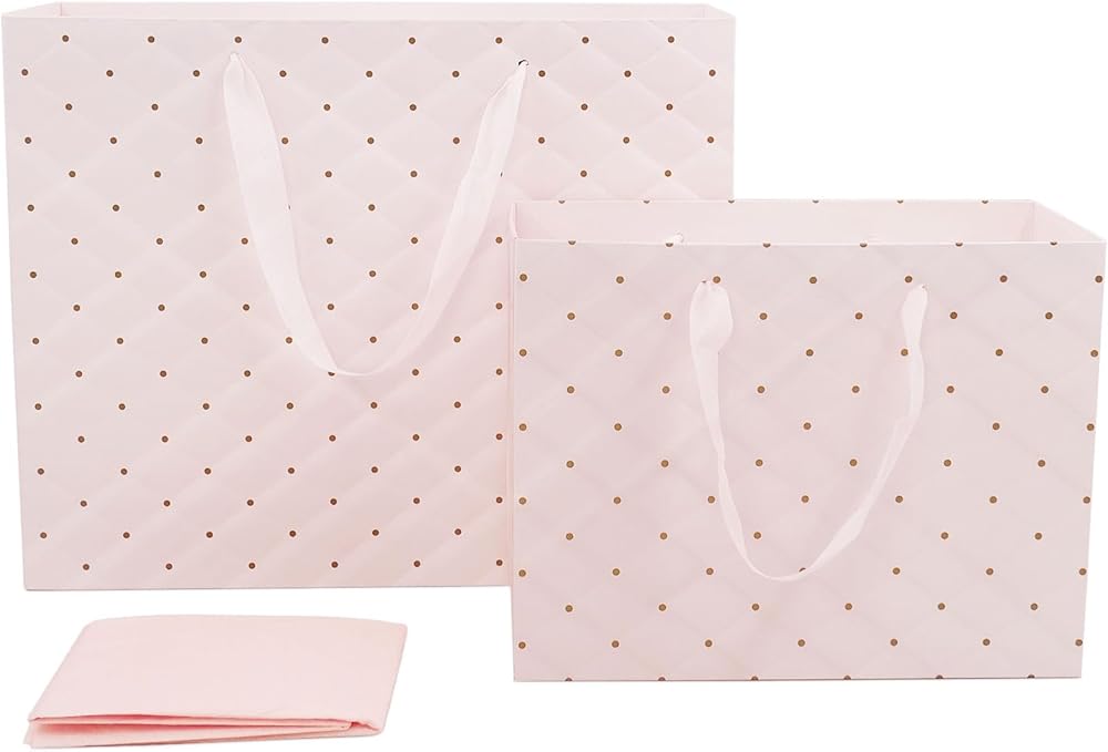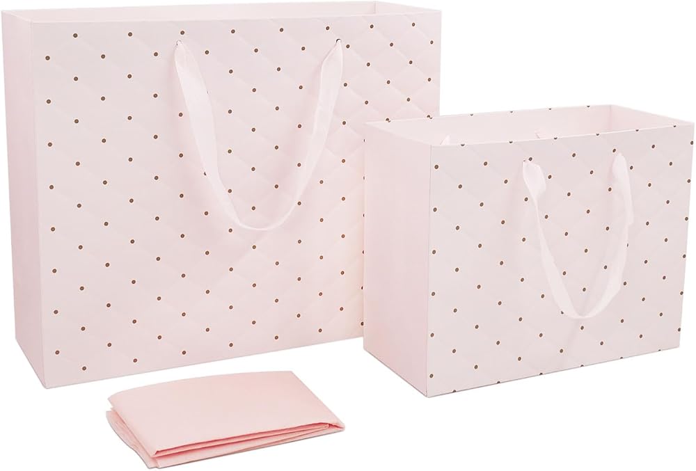 قل وداعا لالتفاف الهدايا الشاقة مع مجموعة حقائب الهدايا الوردية لدينا. تتضمن مجموعتنا 2 أكياس ورقية و 4 صفائح من ورق الأنسجة التي تجعل الغلاف يقدم نسيمًا.