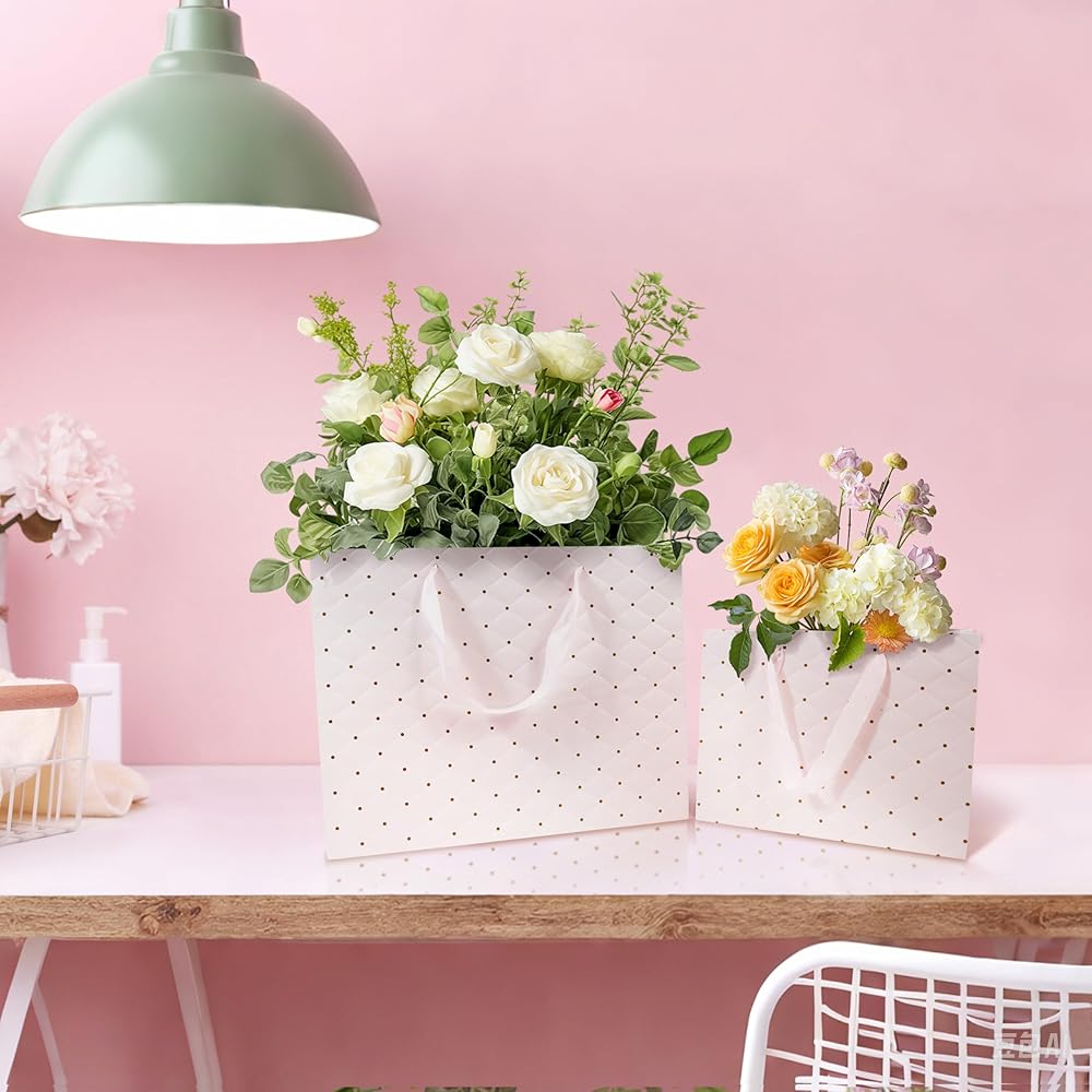 هذه الأكياس الورقية الهدايا مثالية لأي مناسبة - أعياد الميلاد وحفلات الزفاف والاحتفالات السنوية وعيد الأم والمزيد. إنها تضمن أن هداياك لا يتم تقديمها بشكل جميل فحسب ، بل يتم تقديمها أيضًا بشكل جيد.