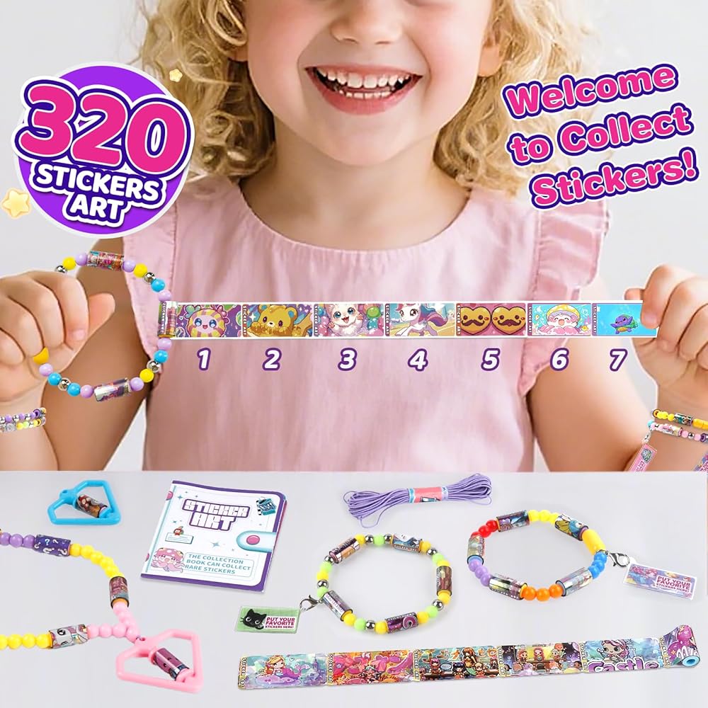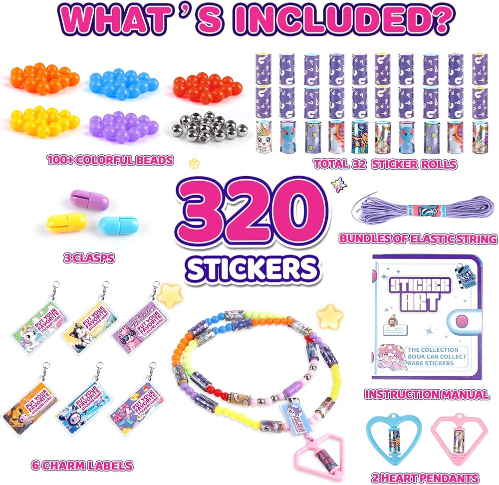 مجموعة أدوات صنع المجوهرات DIY من Plunack للأطفال، مجموعة ملصقات، تتضمن الخرز والسحر والمعلقات، 320 قطعة من الملصقات القابلة للارتداء والمشاركة للأعمار من 5 سنوات فما فوق، هدية عيد ميلاد للفتيات