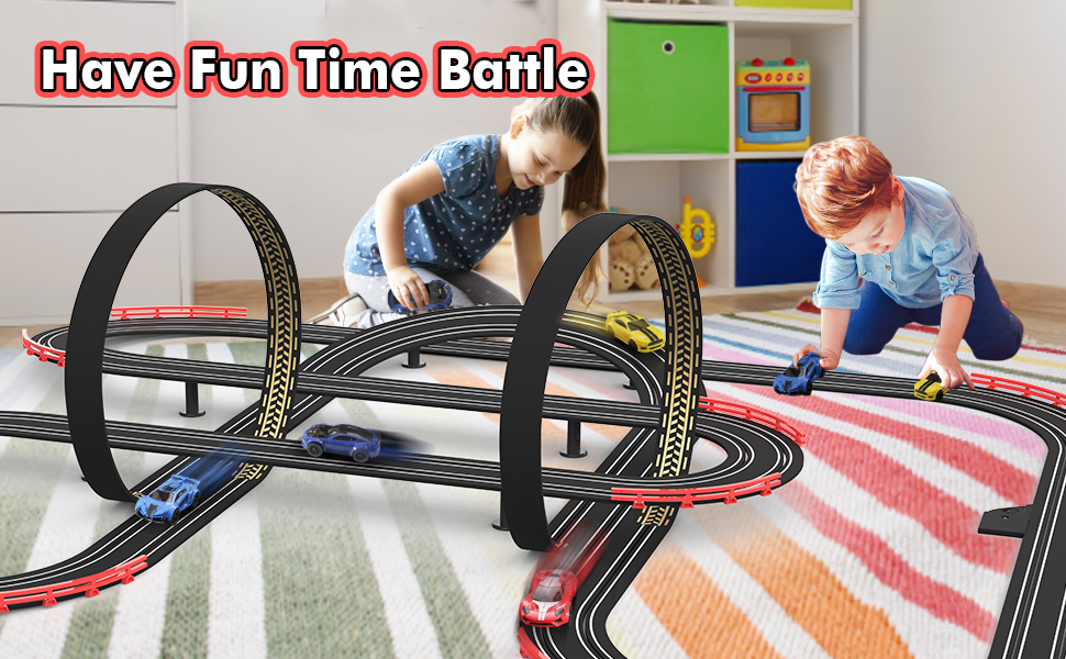 • 【32 قدمًا مسار سباق كبير】 استمتع بلعبة سباق السيارات عالية السرعة مع أطفالك. تشعر أن قوة وسرعة سيارات حجم 1:64 تتسابق على المسار الذي يبلغ طوله أكثر من 32 قدمًا والوصول إلى سرعات المقياس حوالي 320-370 ميلاً في الساعة!