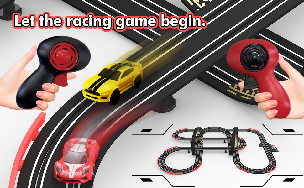 • 【مجموعات مسار سباق سيارات الفتحة】 كل ما تحتاجه في المربع لبدء السباق بما في ذلك 4 سيارات ووحدات تحكم سرعتين وتصميم المسار. قم بإعداد المسار بسرعة وبدء السباق على الفور!