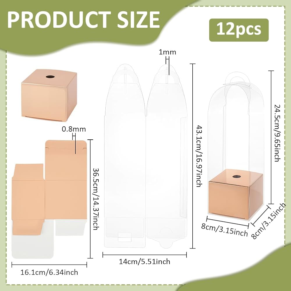 Finished dimension approx 8x8x28cm/3.15x3.15x11.02 inch, these flower boxes for bouquets are nice and suitable for holding 1 average sized flowers, making them ideal choices for flower Packaging.