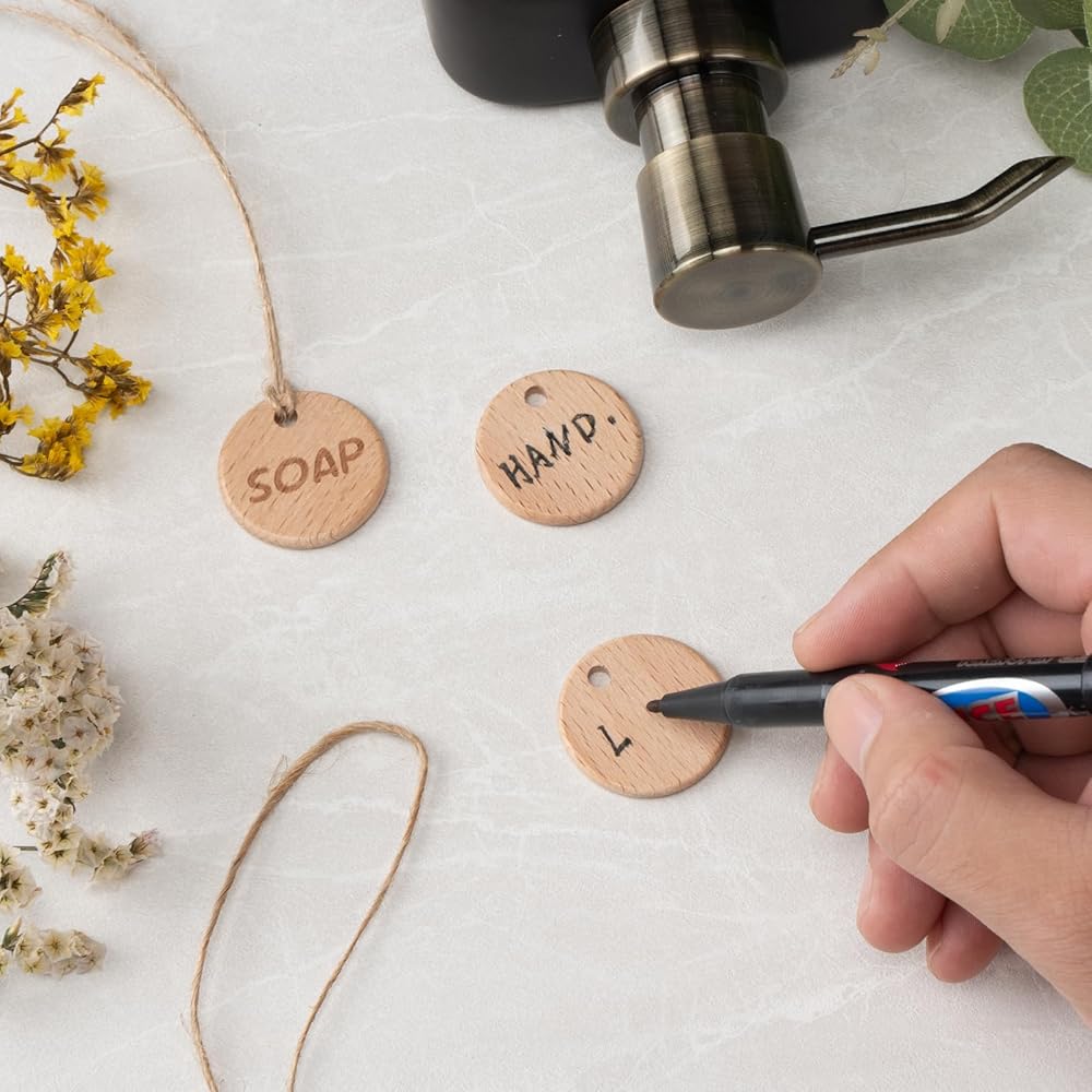 • المظهر الفريد: إن الملمس الطبيعي المتميز لكل علامة يخلق نظرة فريدة من نوعها. هذه الملصقات الخشبية ليست فقط وظيفية. إنها بمثابة زخرفة ساحرة وتصطير لتوزيع صابون كونترتوب الحمام الخاص بك ، مما يعزز على الفور الجمالية الشاملة لمساحتك.