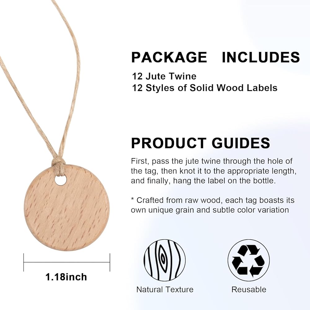 • تطبيق سهل: كل علامة خشبية تأتي مع خيوط الجوت ، مما يتيح لك ربطه بسهولة حول أي زجاجة. لا يضمن خيوط الجوت أي خدوش ، مما يجعلها حلًا مناسبًا وآمنًا لجميع الأدوات المنزلية الخاصة بك.