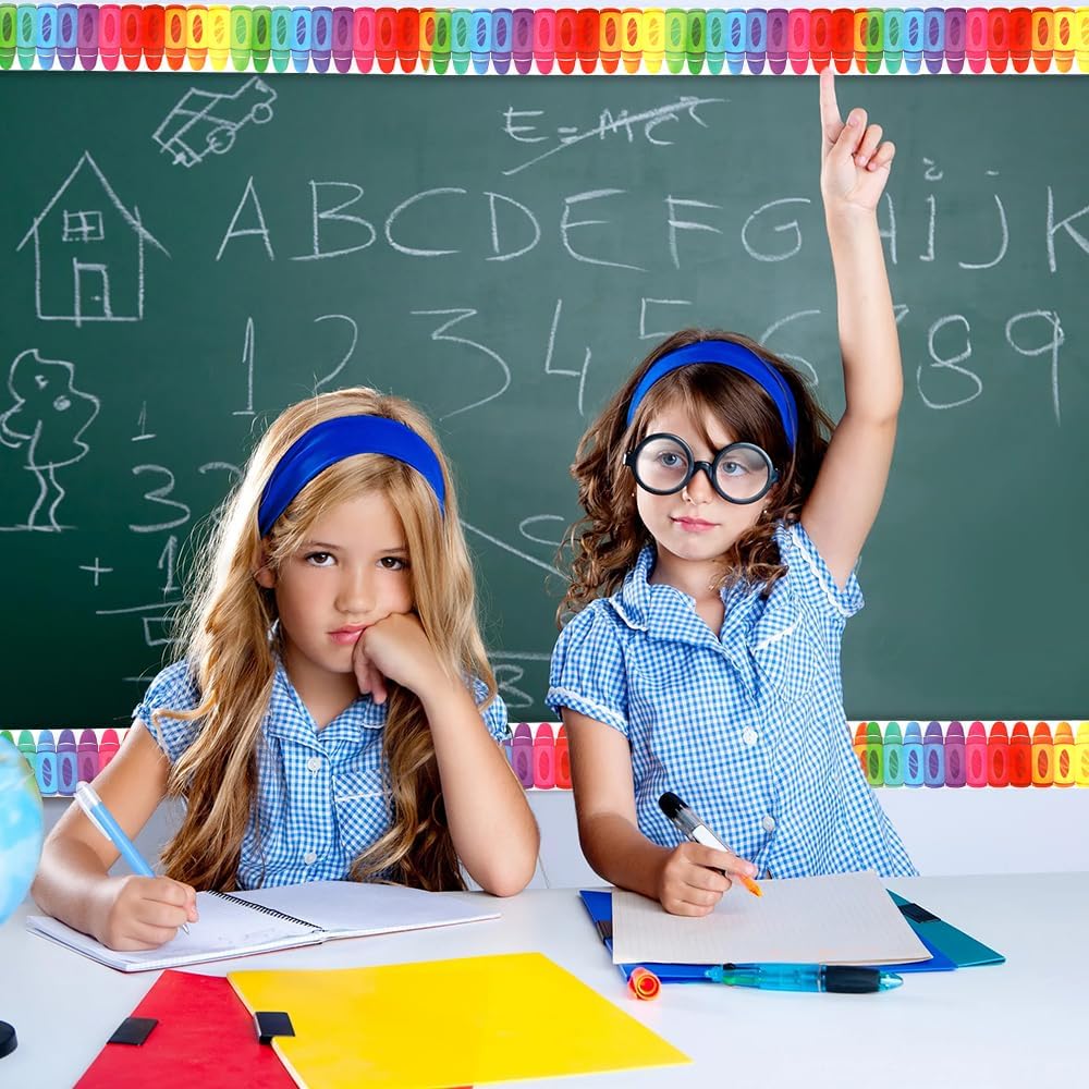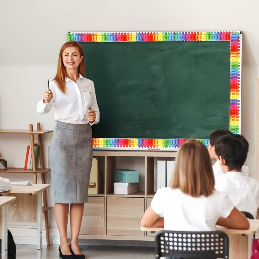 نشرة الفصول الدراسية الحدود الملونة: ستحصل على لفة مستمرة من لوحات Bulletin Border التي يبلغ طولها حوالي 20 مترًا (65.6 قدمًا) وعرضها 7.6 سم (3 بوصات). يضمن هذا الطول السخي أن يكون لديك الكثير لجميع احتياجات التزيين الخاصة بك - ما عليك سوى قطع إلى أي طول مطلوب لإطار الطباشير أو ألواح النشرات أو شاشات الفصل الدراسي. تسمح المادة الإضافية بالبدائل أو تحديث التصميم المتعدد.
