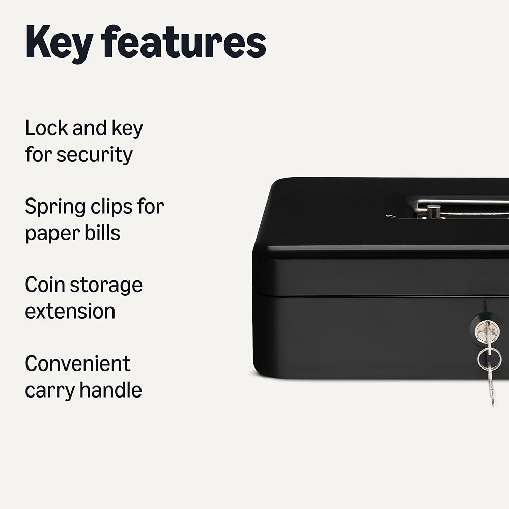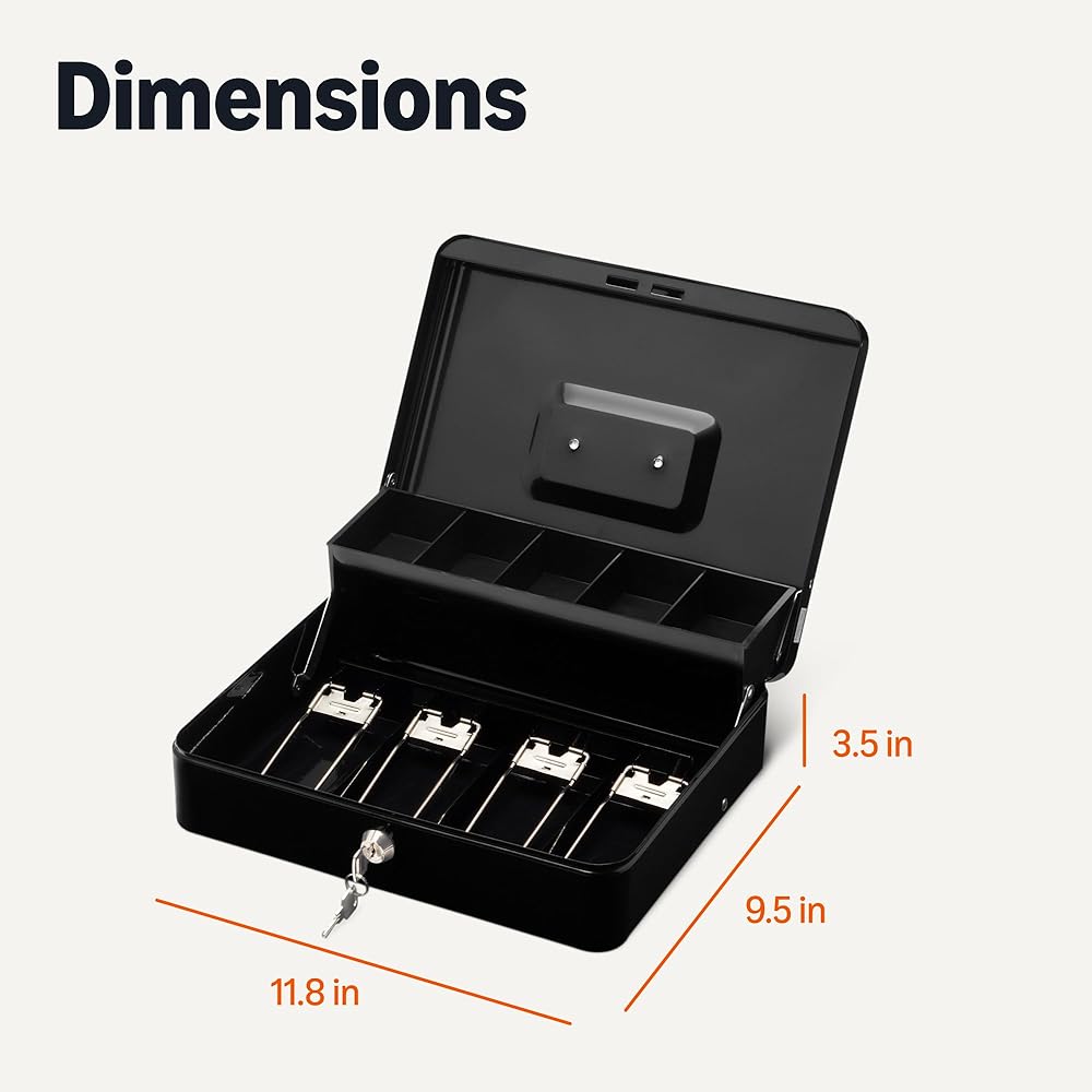 صندوق أمازون الأساسيات النقدي مع قفل مفتاح ودرج منظم الأموال ، 3.54 '' H x 11.81 '' W x 9.45 '' D ، Black