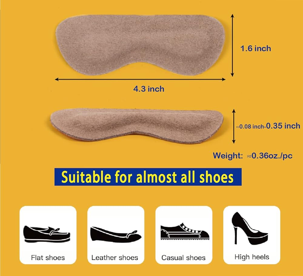 [الوظيفة]: يساعد على ملاءمة الأحذية بشكل أفضل. يقلل من تآكل الكعب. مناسب للأحذية الكبيرة جدًا.
