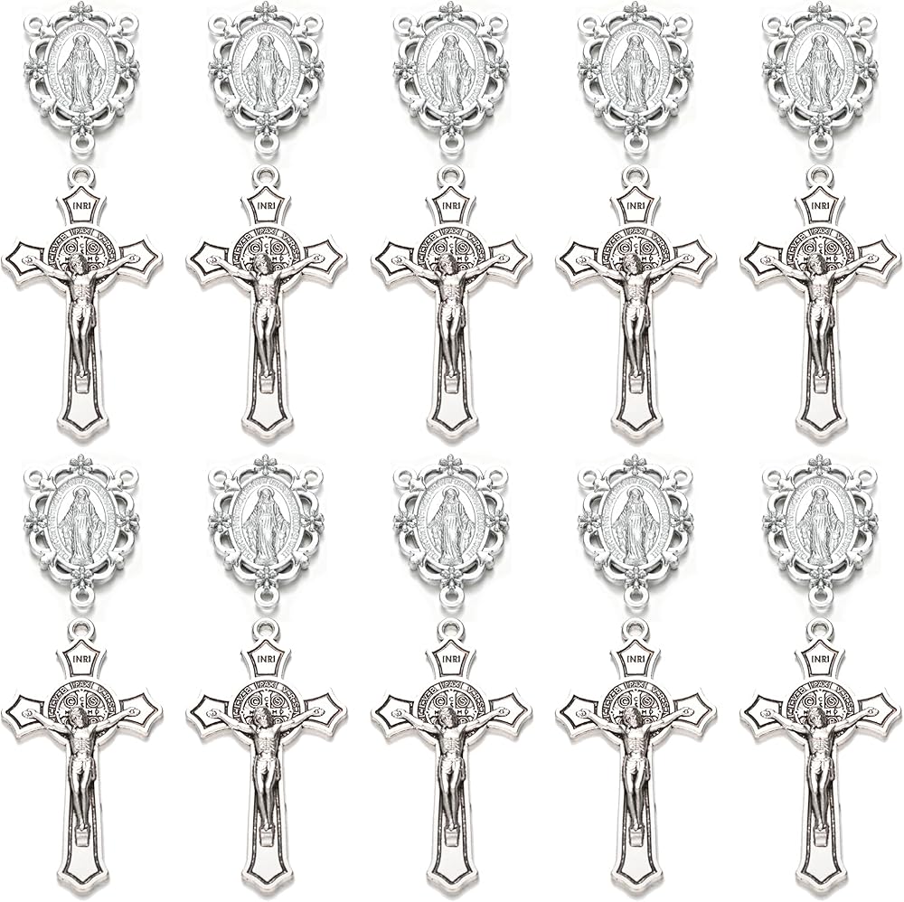• COMPLETE SET: This pack includes 10 oval-shaped centerpiece connectors and 10 intricate cross pendants for DIY religious jewelry making