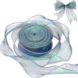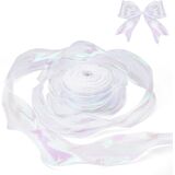 التشطيب المتلألئ القزحي: يتميز شريط الشيفون الشفاف هذا بملاءة آسرة لؤلؤة ، تتحول بين النغمات الخضراء والذهبية تحت الضوء - مثالية لإضافة لمسة سحرية إلى ديكور الزفاف أو هدايا العطلات أو مواضيع الحفلات.