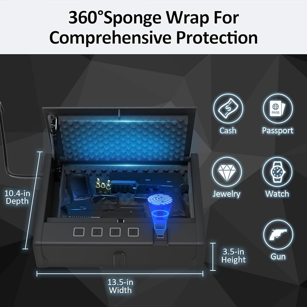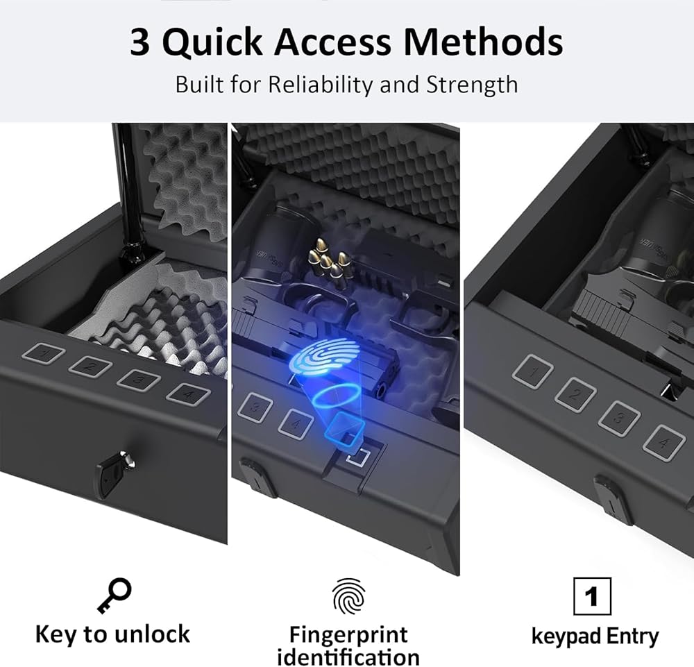 ✅ 【التصميم الذي يقلل من الضوضاء والإضاءة الداخلية】-مزود بمصدات مطاطية ناعمة وأزرار الوضع الصامت ، يقلل هذا الخزنة من الضوضاء أثناء التشغيل. تعزز الإضاءة الداخلية المدمجة الرؤية ، مما يسهل استرداد سلاحك الناري حتى في ظروف الإضاءة المنخفضة.