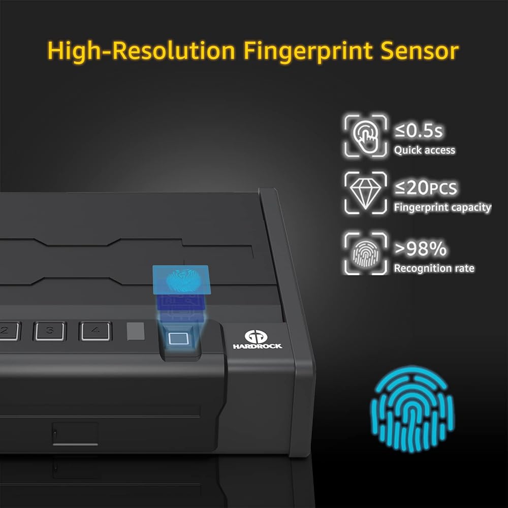 ✅ 【الوصول السريع للبصمات】-يقوم المستشعر البيومتر عالي الدقة بتخزين ما يصل إلى 20 بصمات أصابع فريدة من نوعها ويوفر وصولًا سريعًا فائقًا مع سرعة مطابقة تقل عن 0.5 ثانية ، مما يضمن أنك جاهز عندما يكون الأمر أكثر أهمية.