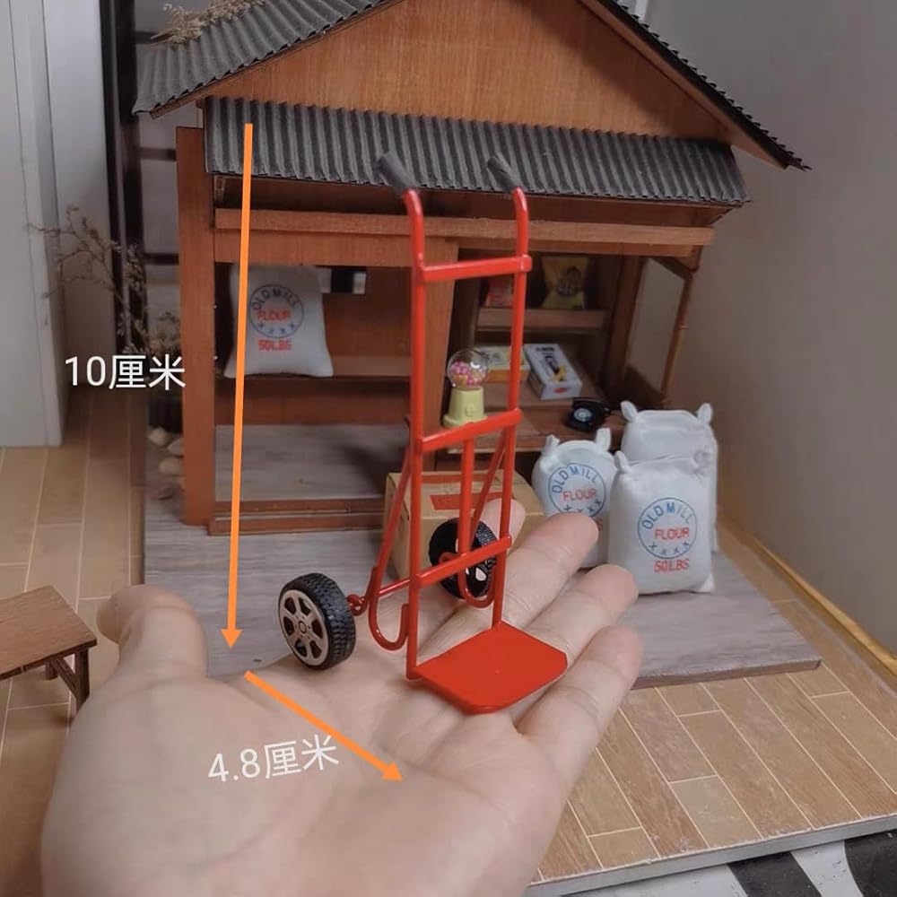 1/12 Miniature Dollhouse Hand Cart Mini Trolley Sack Truck Dinning Room Home Decor Props