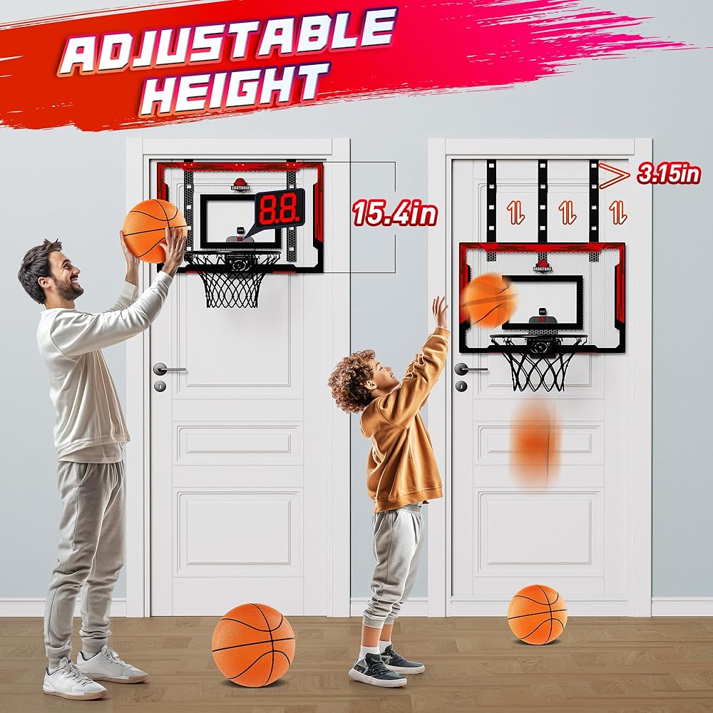 ارتفاع قابل للتعديل: مزود بخطاف طويل الذراع ، يمكن تعديل حامل كرة السلة المصغرة بسهولة إلى أربعة ارتفاعات مختلفة ، كل بزيادات 3.15 بوصة ، بحد أقصى 15.4 بوصة ، لاستيعاب المستخدمين من جميع الأعمار والارتفاعات. سواء كنت طفلاً أو مراهقًا أو بالغًا ، يمكنك العثور على ارتفاع إطلاق النار المثالي والاستمتاع بمتعة اللعبة.