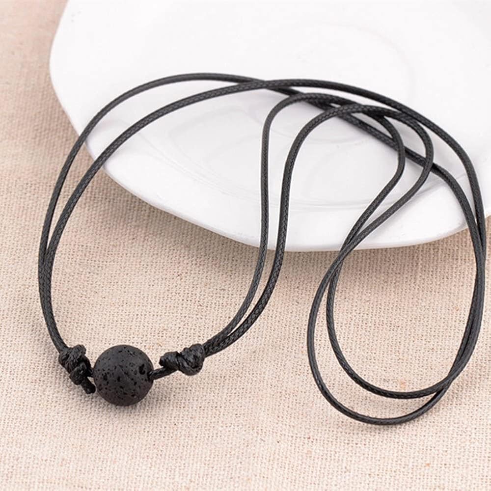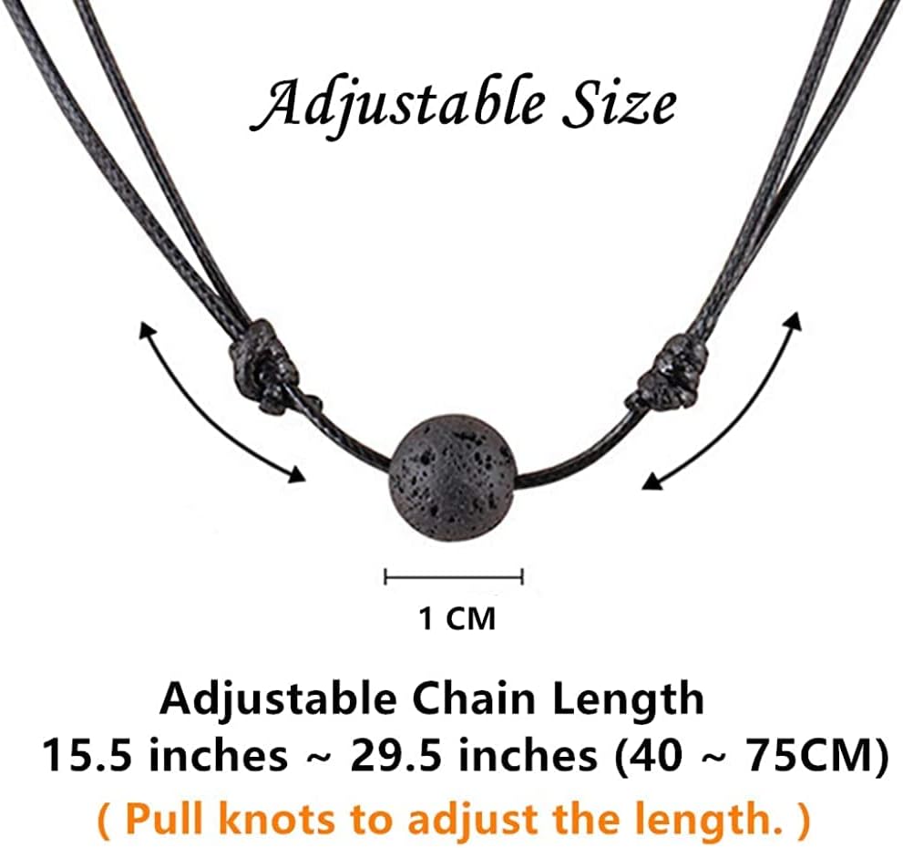 طول السلسلة القابل للتعديل: 15.7 بوصة ~ 31.8 بوصة (40 ~ 80 سم) ؛ حجم الخرزة الصخور الحموم: 0.3 بوصة (1 سم) ؛ المواد: خرز الحجر الحمم الصخري ، حبل الشمع