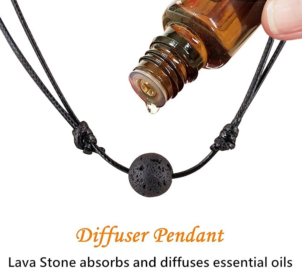قلادة موزع لرائحة الزيوت العطرية - خرز لافا الصخور مسامي، يمكنه امتصاص الزيوت العطرية بشكل جيد وتنشر ببطء، ضع قطرة من زيتك العطري المفضل على أحد حبات اللافا على السوار حتى تتمكن من رائحة الزيوت العطرية طوال اليوم
