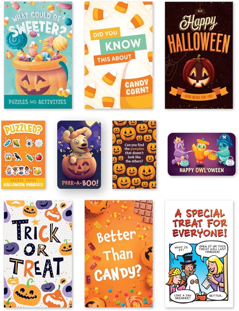 This assortment includes ten copies each of ten tracts perfect for distribution to children at trick-or-treat, parades, and other Halloween events (100 tracts in all). Inside you will find 60 folded paper Gospel Tracts, 20 business card Mini Tracts, and 20 Motion Tracts which animate as you tilt them.