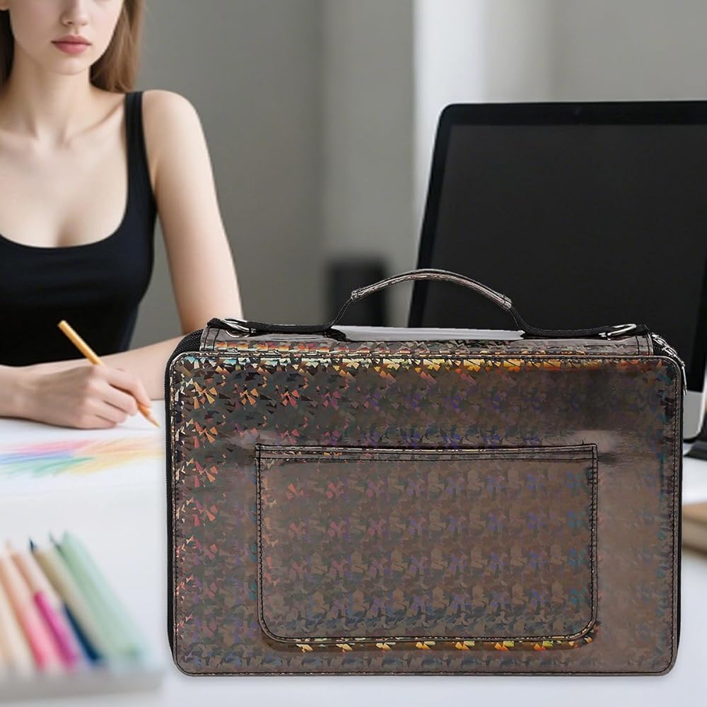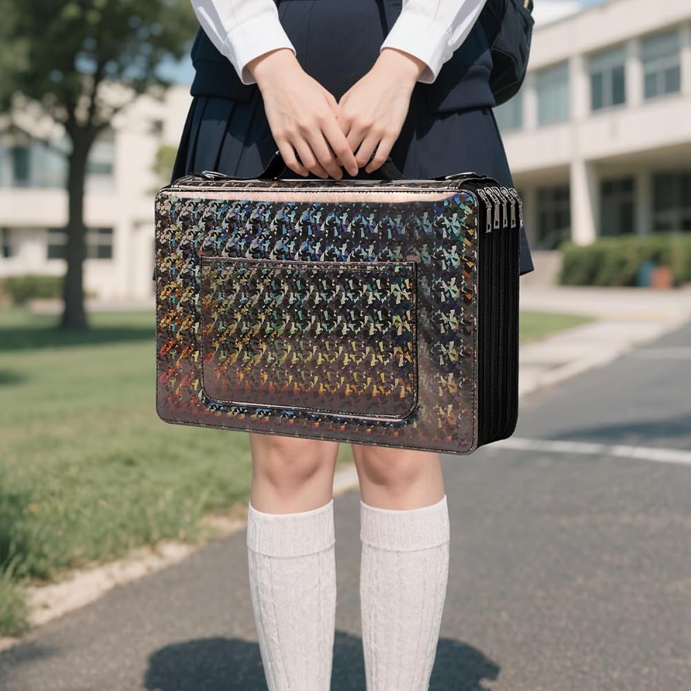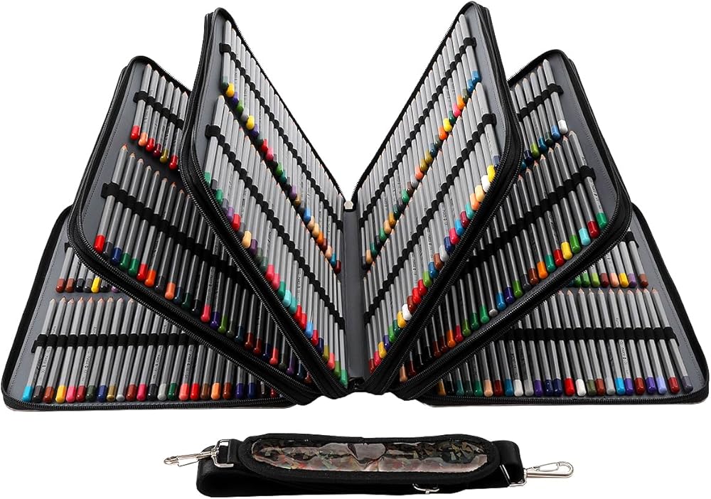 High Large Capacity:with Compartments- 5 layers design, each one layer has two sides, roomy for all your stationary, allows you easy to organize pencils by color family, once you unzip it, you have access to ALL the pages and colors.
