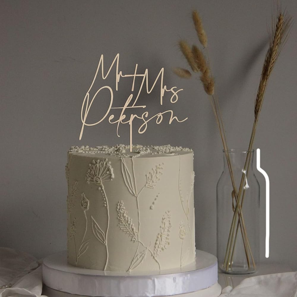 Add an elegant finishing touch to your special day with this beautifully crafted wooden cake topper. Measuring 5.0 x 6.0 inches, this custom cake topper brings a rustic charm to your wedding or anniversary celebration. Perfect for adorning your cake with personalized initials, names, or special dates, this versatile topper can be customized to capture your unique style. The natural wood construction offers a timeless appeal that complements both traditional and contemporary cake designs. Crafted in the US, this non-edible cake decoration makes for a stunning centerpiece and a cherished keepsake of your memorable occasion. The topper arrives ready to use and includes all necessary components for easy placement. Whether you're planning a wedding or celebrating an anniversary, this sophisticated cake topper adds that perfect personal touch to your celebration cake.