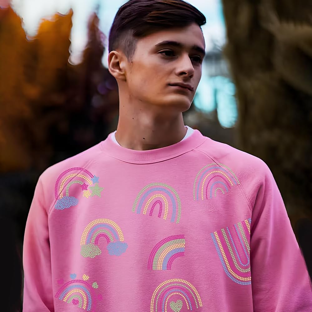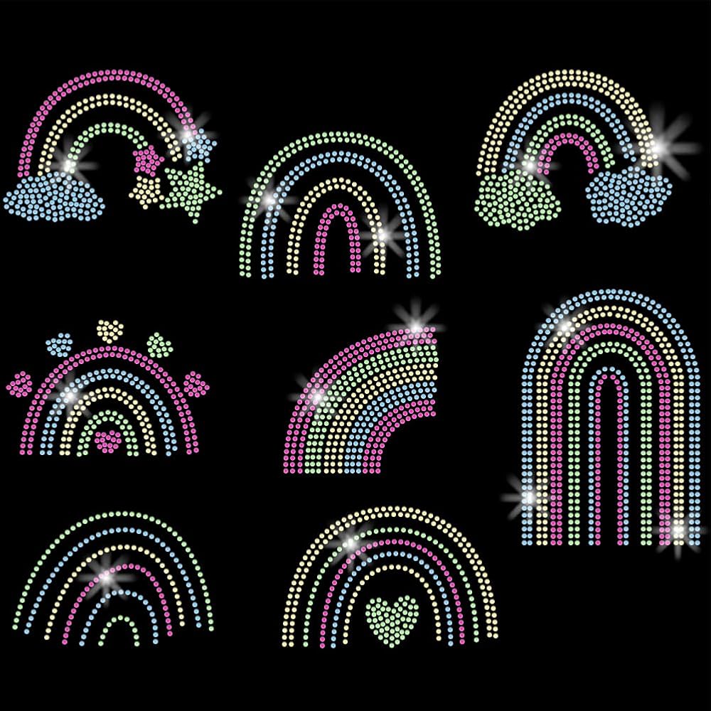 قوس قزح النمط الصغير: يتم تكديس نطاقات الألوان المنحنية فوق بعضها البعض ، مع ذوبان كلا الطرفين في حلوى القطن مثل السحب. هذا النمط الأنيق مناسب جدًا لتزيين الملابس DIY.