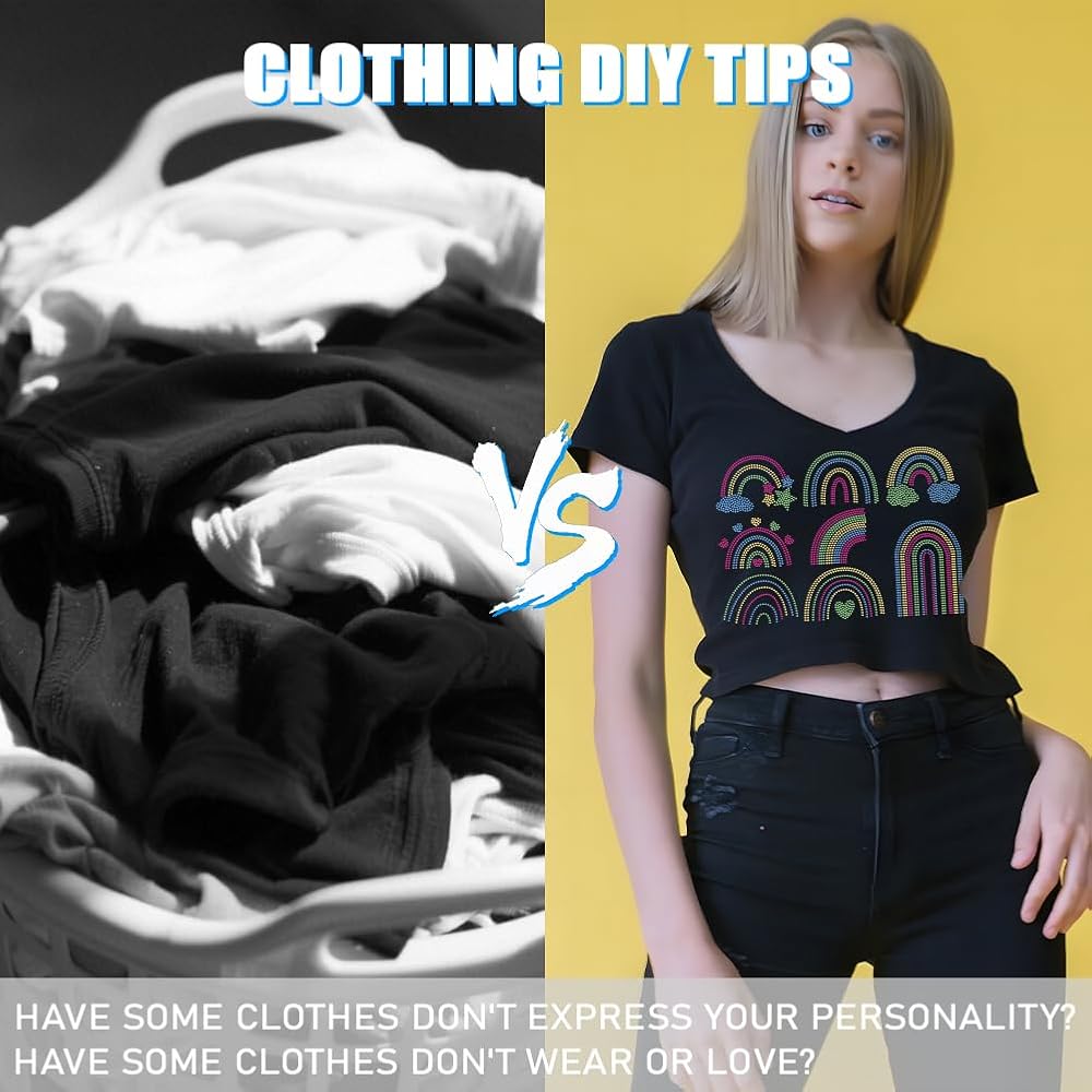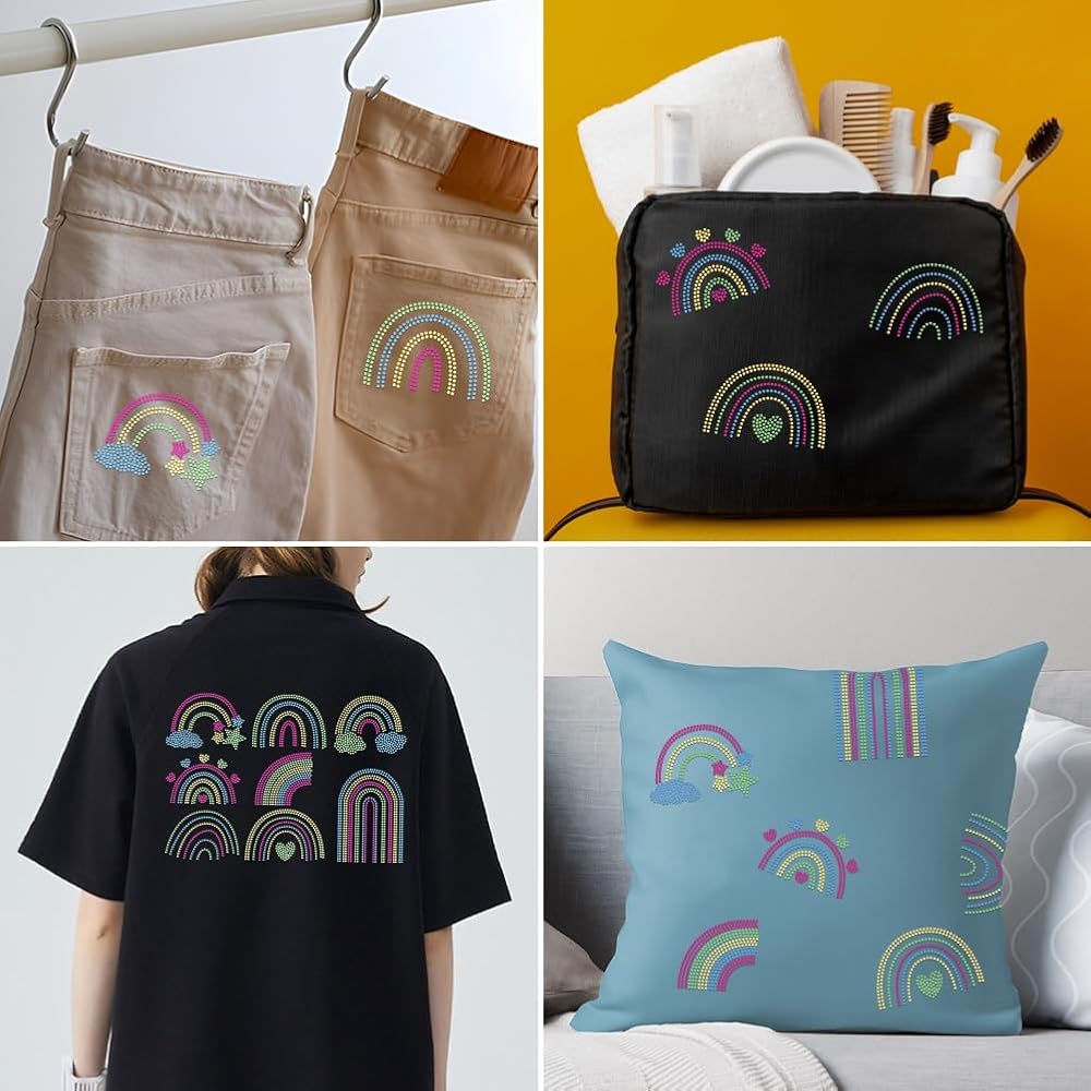 جودة عالية: الحديد عالي الجودة على التحويلات ، المصنوعة من أحجار زجاجية عالية الجودة. الجودة العالية للمواد المستخدمة تضمن التصاق طويل الأمد للمنسوجات.