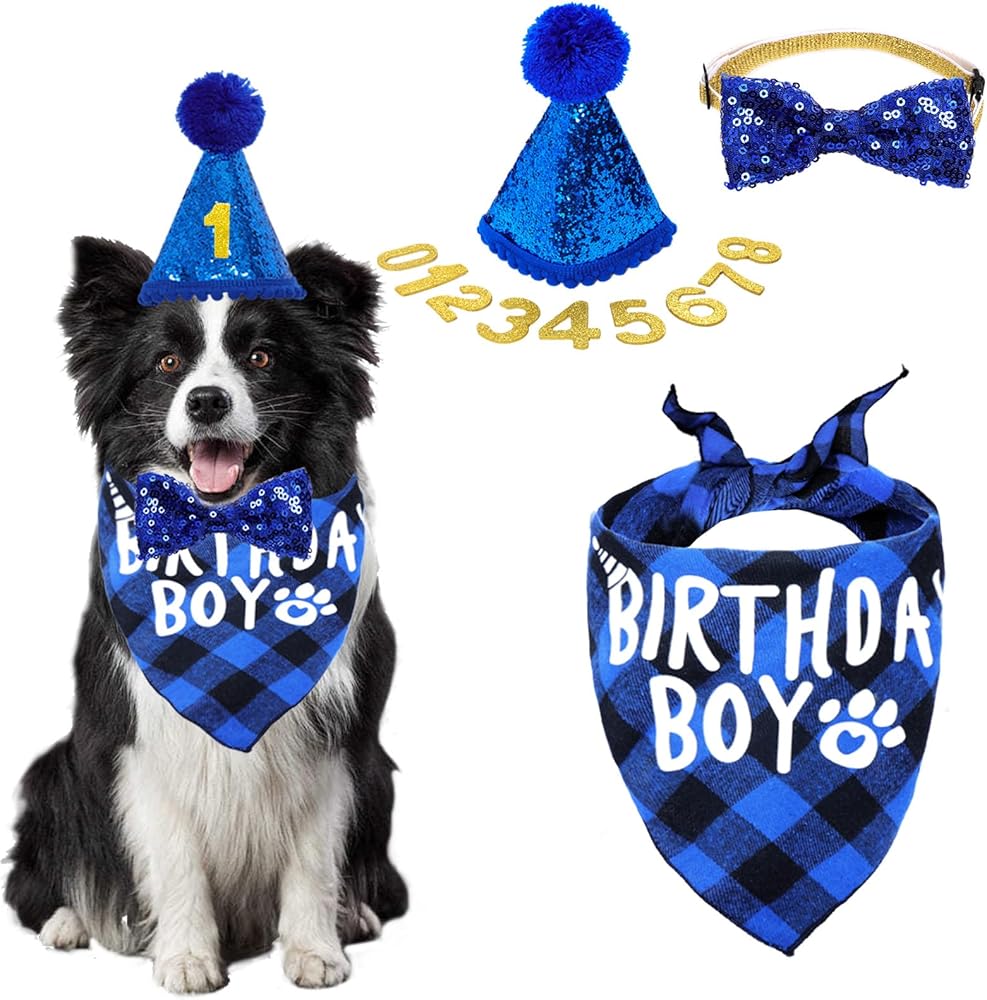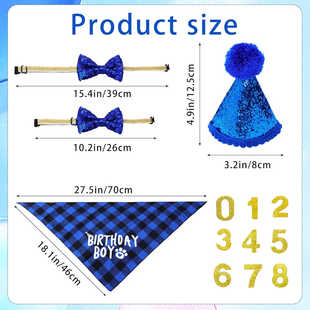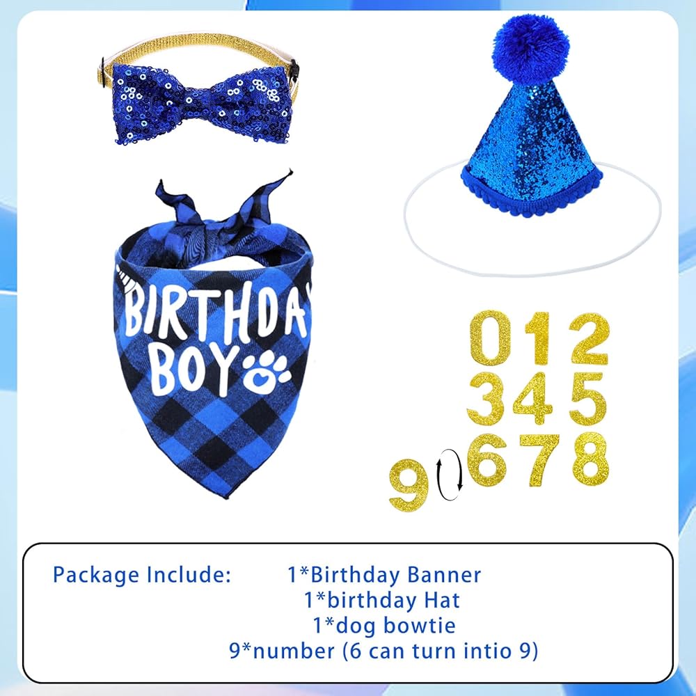 Package Included:1*Birthday Banner, 1*birthday Hat, 1*dog bow tie, 9*number (6 can turn intio 9)