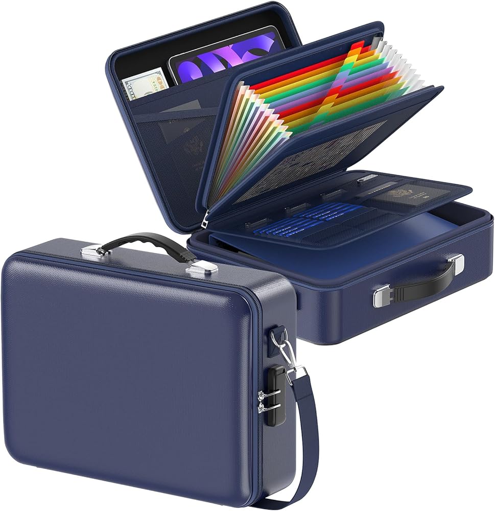حلول الأمان المنزلية والسفر متعددة الاستخدامات: يتميز هذا الإثبات متعدد الحريق في المستندات المنزلية بمقبض حمل مريح وملف تعريف رفيع. استخدم كصندوق ملفات مقاومة للحرائق في المنزل أو المكتب أو أثناء التنقل-حماية الكل في واحد للأوراق القانونية والمجوهرات والوسائط الرقمية.