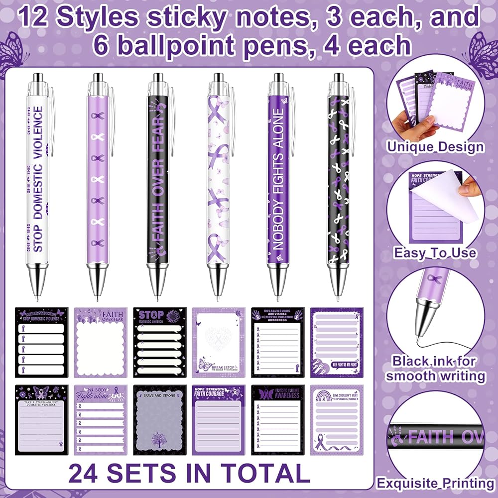 48 Domestic Violence Awareness Support 24 Sticky Note, 24 Purple Ribbon Pens