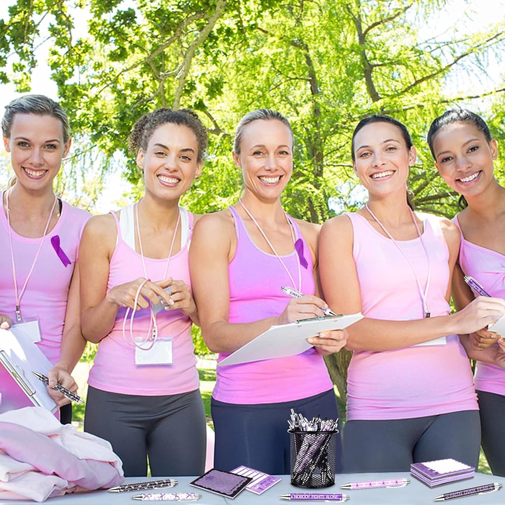 ◆complete set: package includes 12 different sticky note designs (3 of each) and 6 styles of ballpoint pens (4 of each) featuring purple ribbon awareness themes