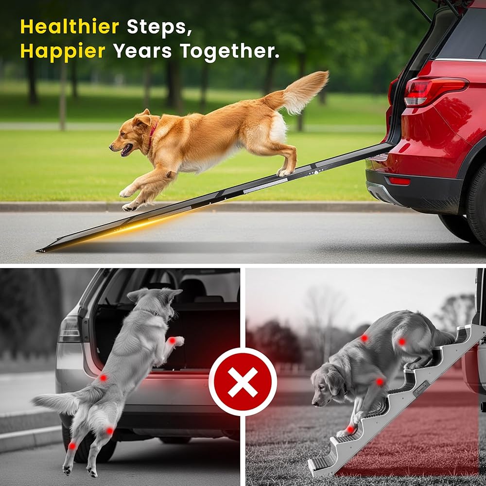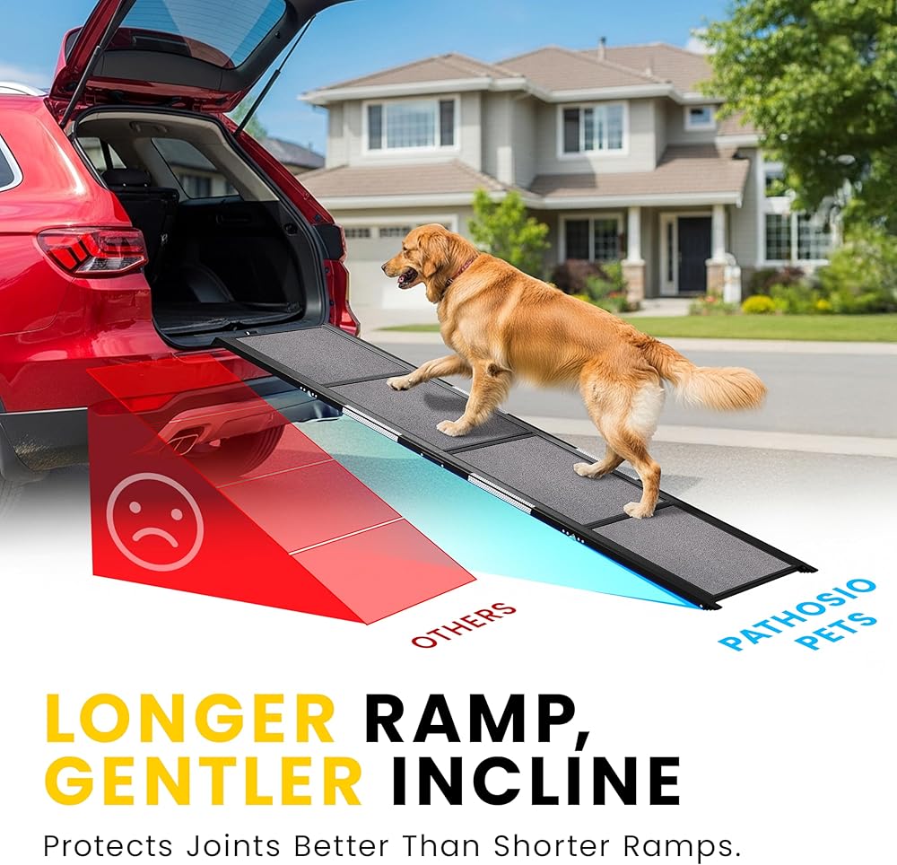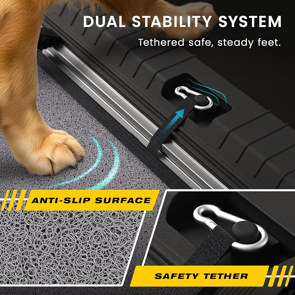 ميزات السلامة المحسنة-مزودة بأقدام مضادة للانزلاق ، ومقطع حبل السلامة ، وطول أطول للمنحدر اللطيف ، يوفر هذا المنحدر أقصى استقرار ويحمي الكلاب العليا أو المصابة من إجهاد المفاصل.