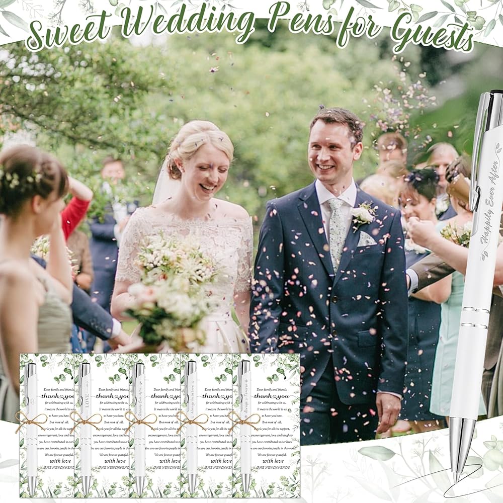 Delicate and Romantic:These wedding pen gift bulk for guests are printed with many romantic and heartwarming words, such as [Always & forever], [Happily Ever After], [Always be in Love], which can create a romantic atmosphere for your wedding party,they can be used as wedding decorations or as wedding souvenirs for guests.