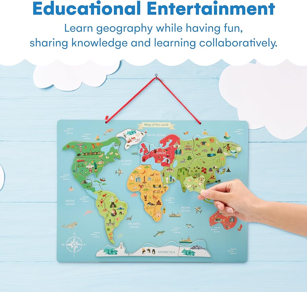 تعليمية وممتعة: إن لغز خريطة العالم المغناطيسي للأطفال الذين تتراوح أعمارهم بين 3 سنوات يجعل التعلم جغرافيا ممتعة-تعليم التعليم واللعب من أجل تجربة تعليمية ممتعة.