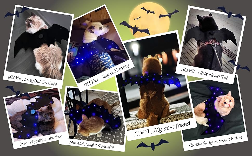 🐾 مواد آمنة وخفيفة الوزن وصديقة للحيوانات الأليفة-مصنوعة من نسيج غير سامة وخفيف الوزن لضمان شعور كلبك أو قطتك بالراحة والأمان طوال الليل. تسمح أجنحة الضوء بالريش بالحركة الطبيعية وارتداء طوال الليل خلال احتفالات عيد الهالوين.