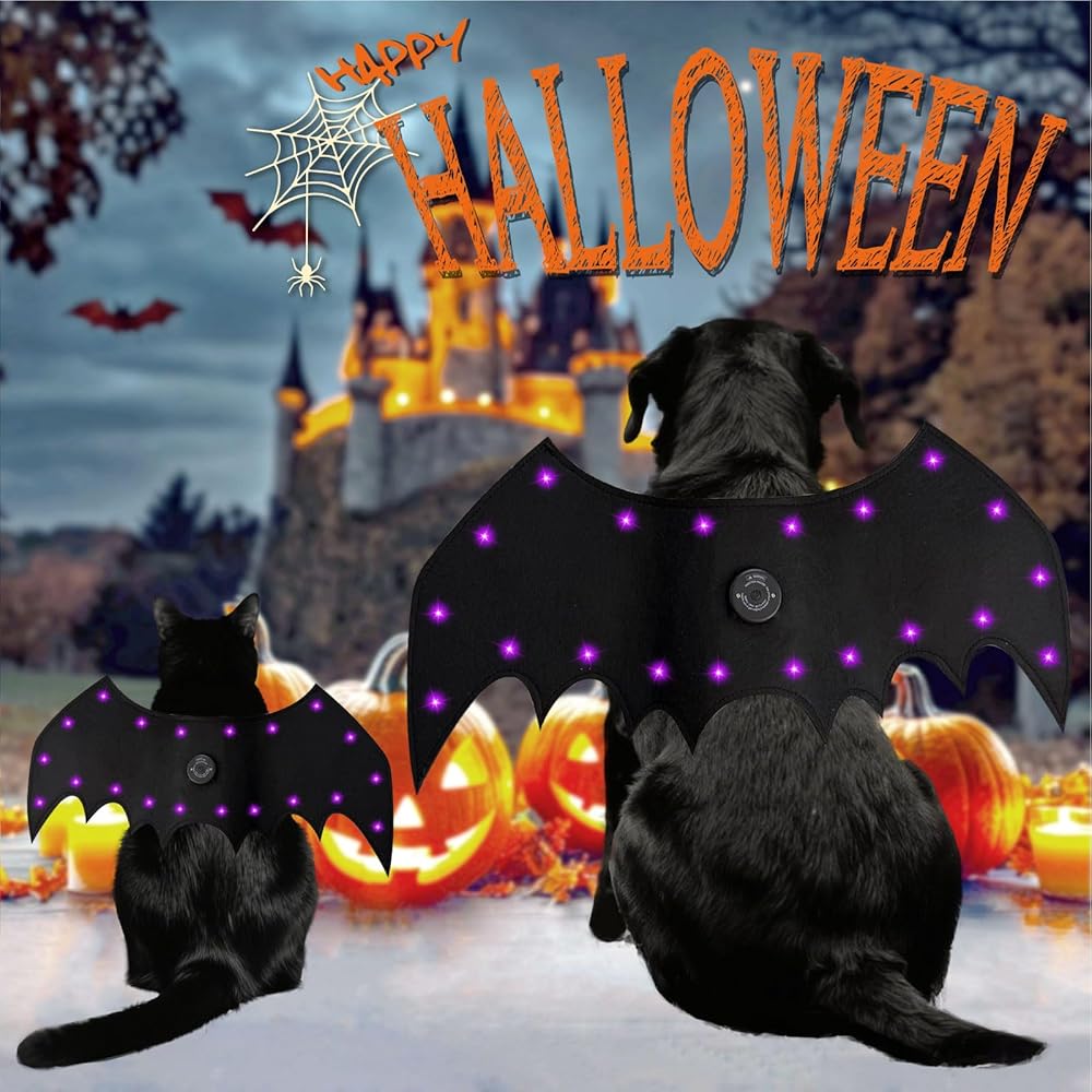 🎇 20 مصابيح LED مشرقة مع 4 أوضاع متوهجة - اجعل حيوانك الأليف مركز الاهتمام في أي حفلة عيد الهالوين! الميزات ثابتة على خيارات الضوء البطيئة والبطيئة والضوء القوية لإنشاء تأثير مضرب مصاص دماء ساحر لمسابقات الخدعة أو المعالجة أو الأزياء.