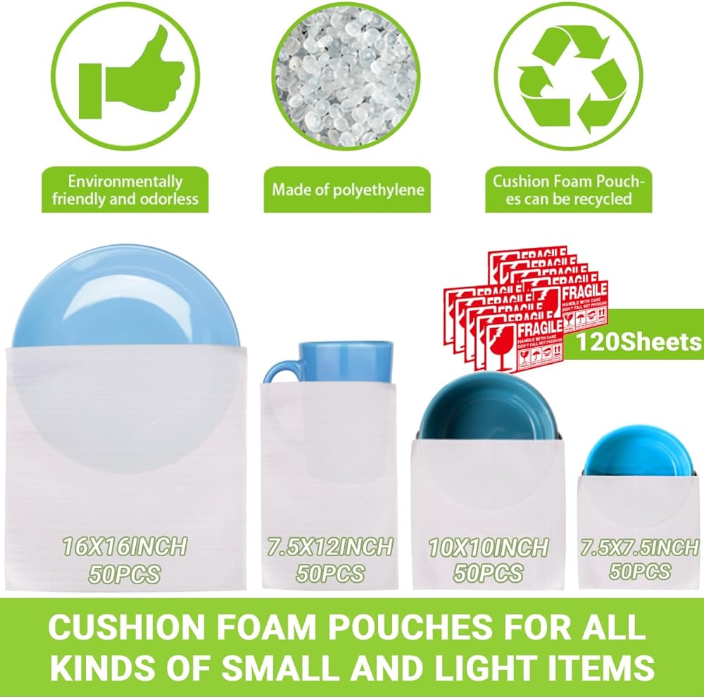 • 【صفائح رغوة وسادة لجميع أنواع العناصر الصغيرة والخفيفة】: 16 "x16" 50pcs ، 12 "x12" 50pcs ، 10 "× 10" 50pcs ، 12 "× 7.5" 50pcs ، 60pcs علامات هش. صفائح رغوة الوسائد سلسة من الداخل والخارج ، ثابتة ودائمة ، مناسبة للعناصر الصغيرة والهشة في حياتنا اليومية ، مثل النظارات والأكواب وأدوات المائدة وإطارات الصور الصغيرة ، إلخ. كما أنها مثالية لبعض المجموعات والأعمال الفنية ذات الأهمية الكبيرة.