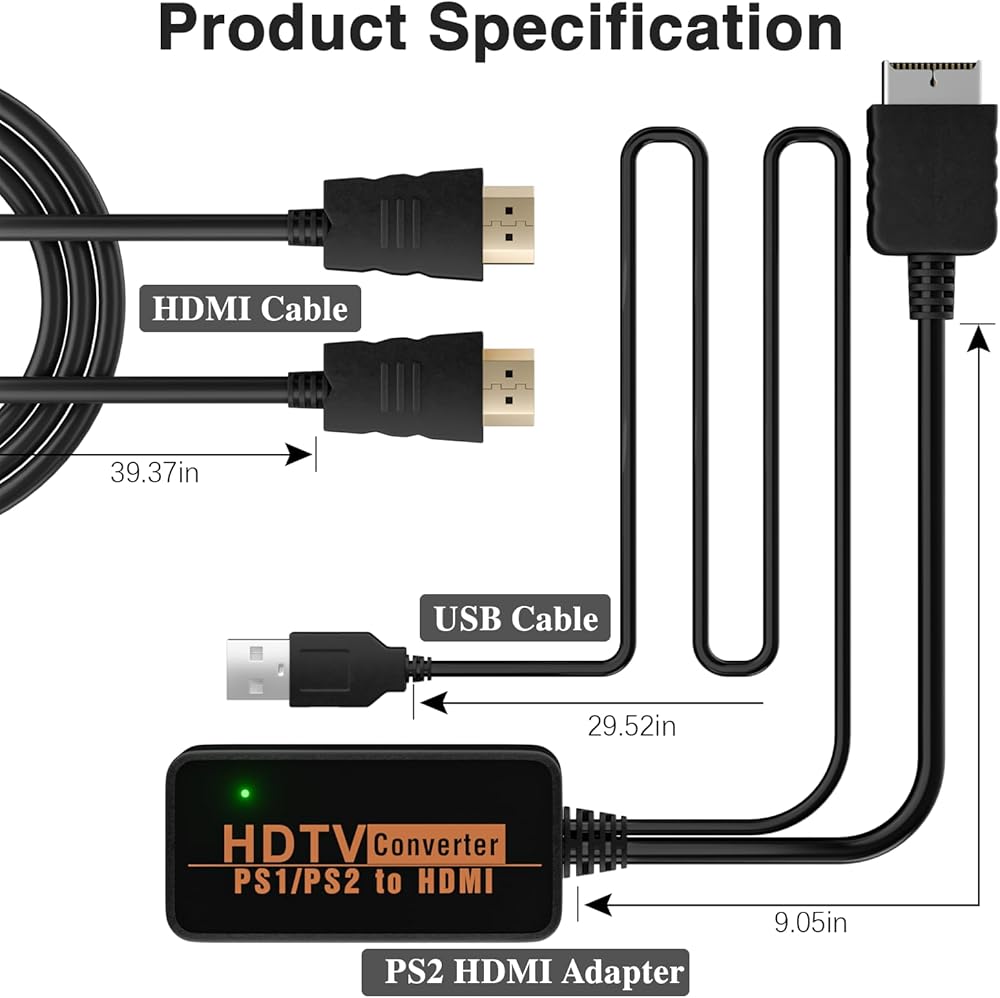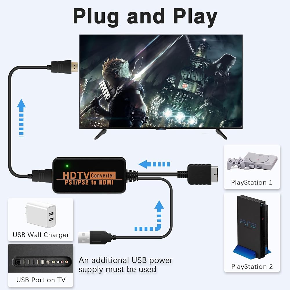 🎮محول PS2 HDMI: محول Hisewen PS2 HDMI متوافق مع PlayStation 1 و2، مما يسمح لك بنقل إشارات وحدة التحكم في الألعاب إلى HDTV الخاص بك.