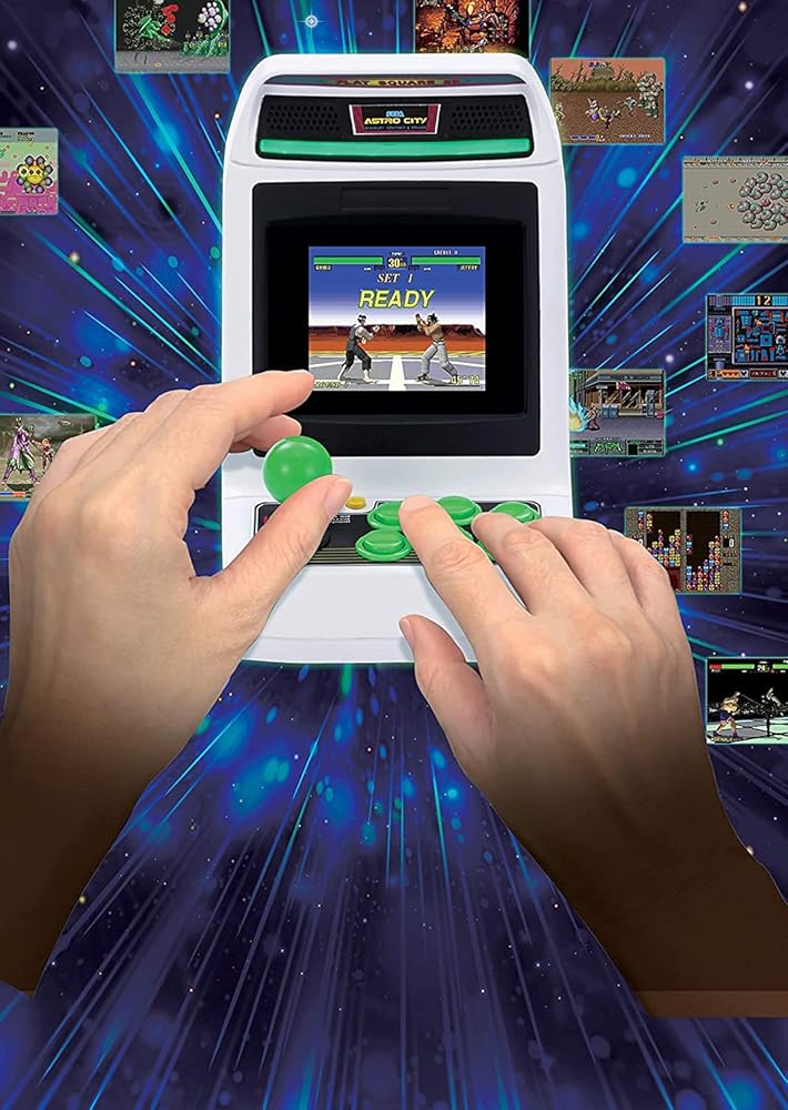 - نسخة مستنسخة بمقياس 1/6 لخزانة اركيد بالحجم الكامل، فإن سيجا استرو سيتي ميني هي وحدة تحكم وظيفية بالكامل مع شاشة 4 انش وعصا تحكم و6 أزرار حركة