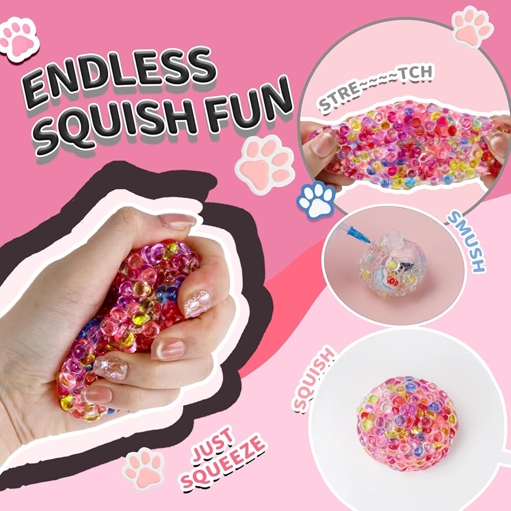 【Endless Sensory Play Options】This isn't just a toy—it's a DIY stress ball making kit for creating endless textures and sounds. From soft and gooey to crunchy stress ball sensations, the flexible squishy skin lets you build ASMR-rich designs like a crunchy squishy, vacuum stress ball, or slow-rising ball depending on your filler of choice.